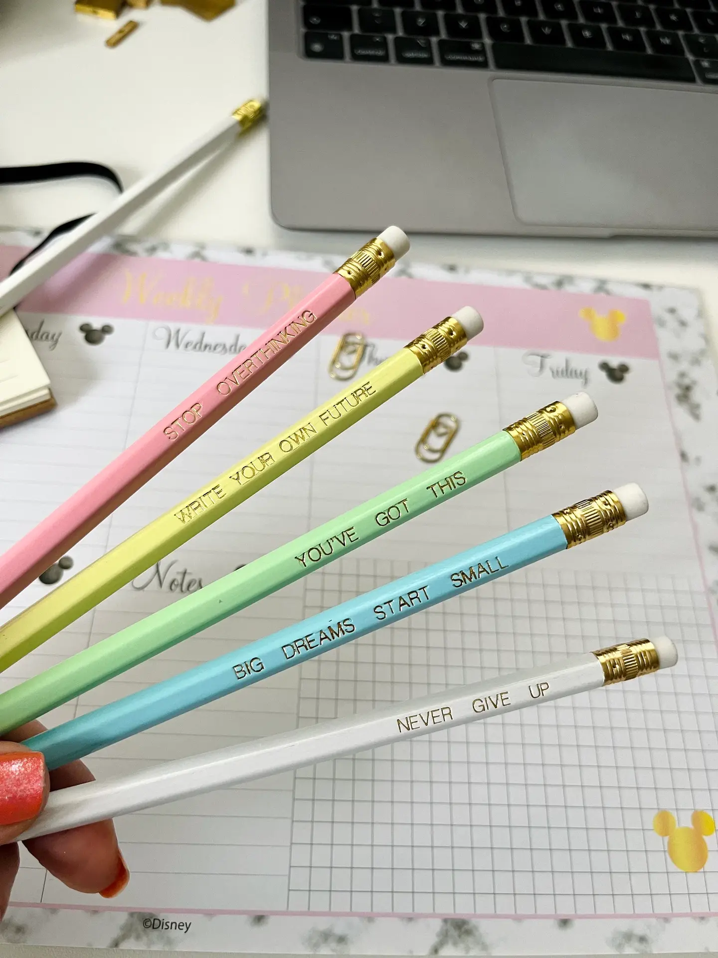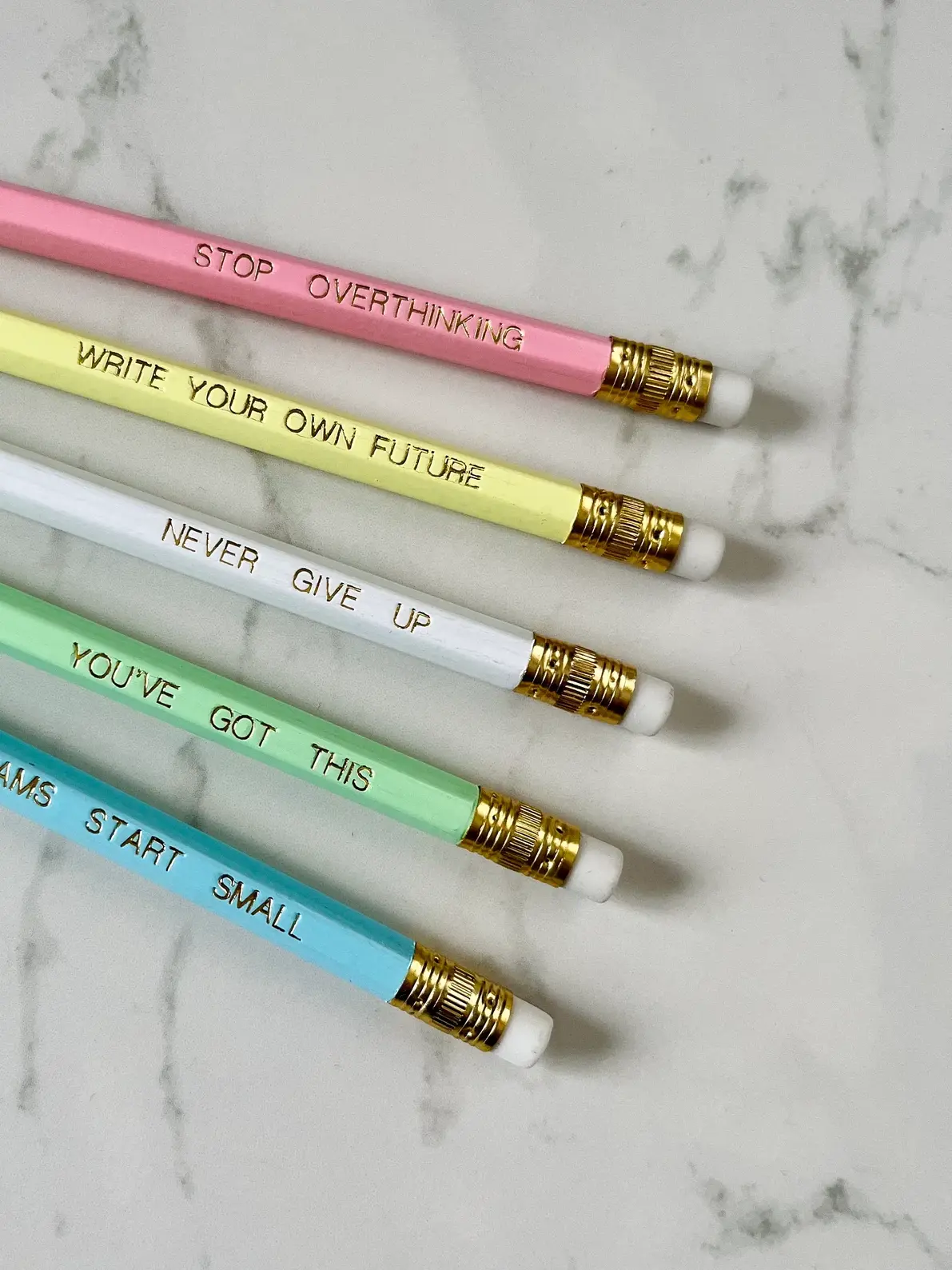 Each pencil comes with its own unique positive quote to brighten your day and spark your creativity: