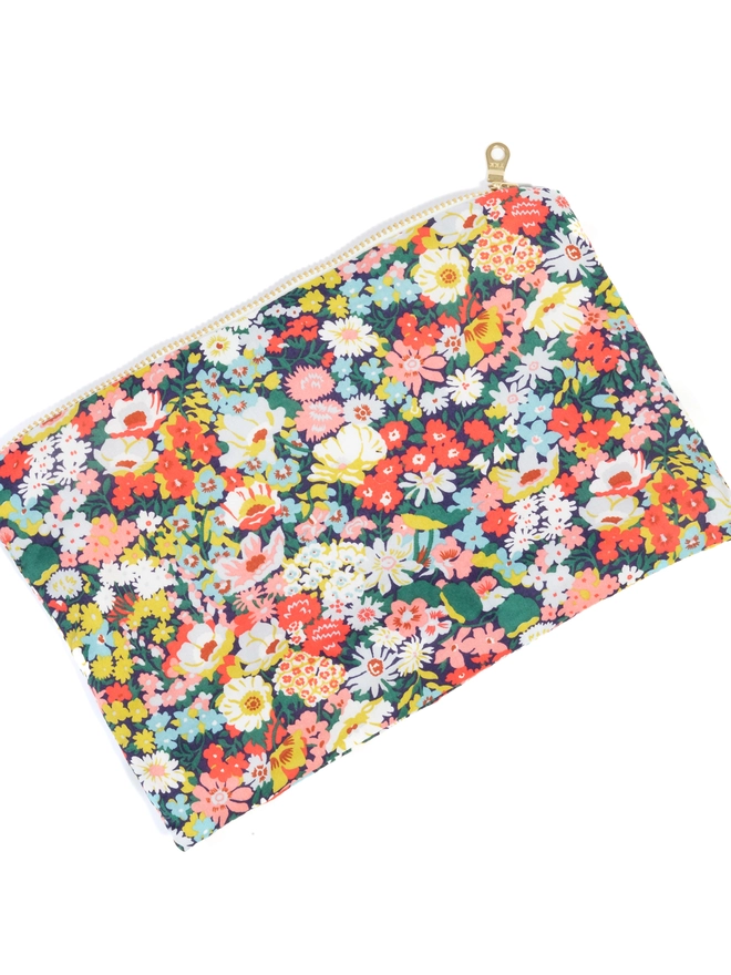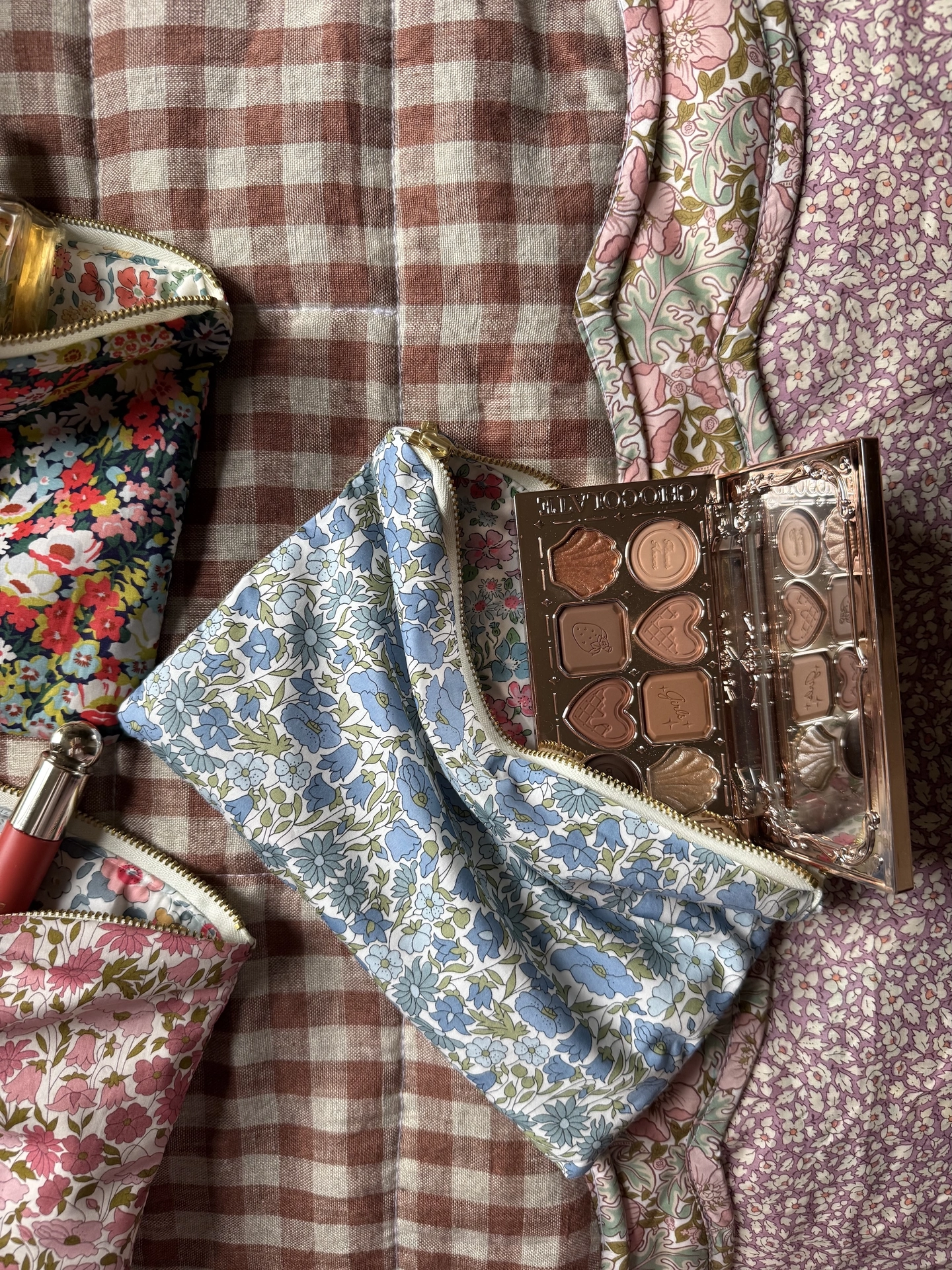 These useful pouches are handmade from Liberty fabrics and finished with a brass zip. Finished with Thorpe on the outside and lined with Annabella Tana Lawn Cotton. The purses are padded for extra durability and could be used as make up bag, pencil case o...