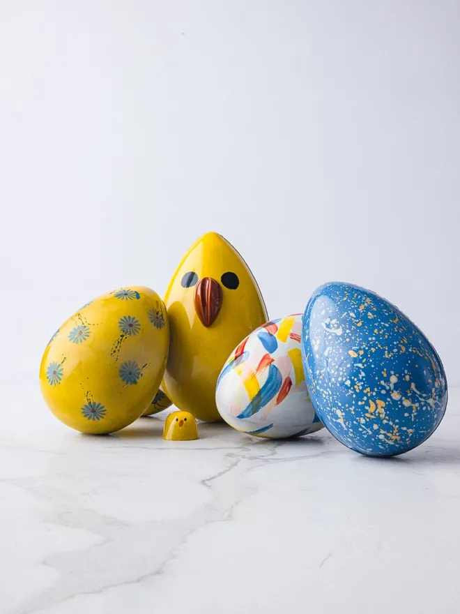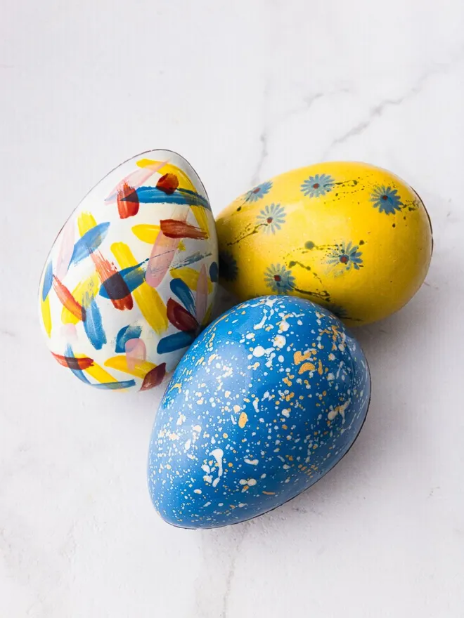 Colours of the egg my slighly vary, dependence of chocolate type choosen.