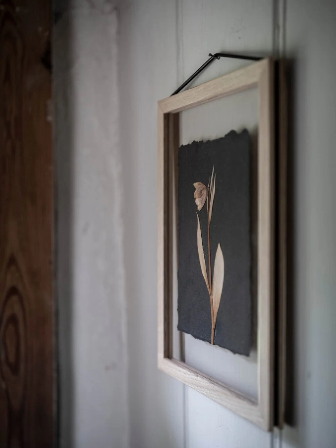 Grown and pressed in my East Sussex garden, this flower was chosen for its burnished bronze foliage that beautifully reflects the light. Dozens of the flowers I press are selected for larger works, but only a special few are picked as standalone pieces for their uniqueness.
