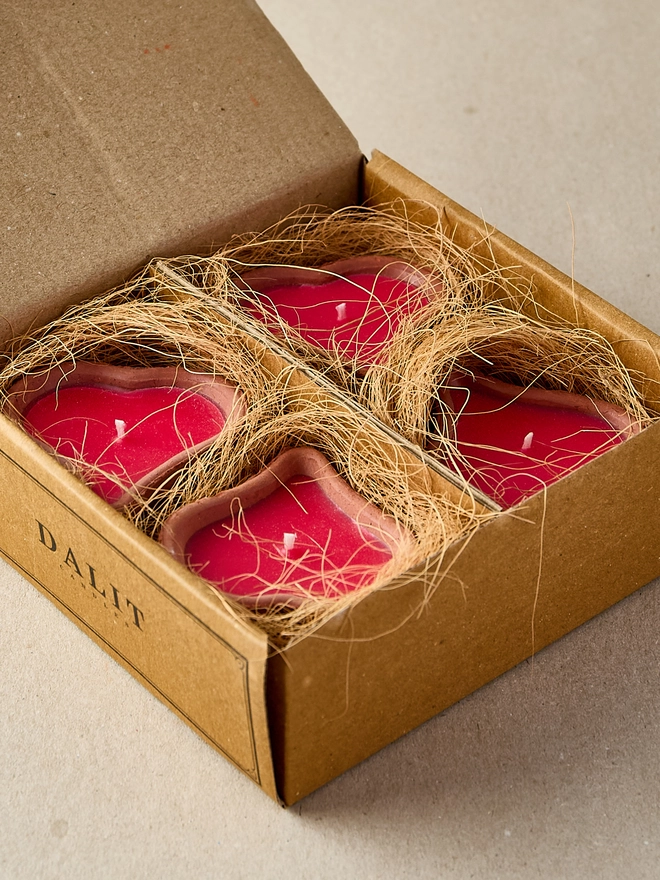 Our Priya heart-shaped candles have been handmade in Dharavi.