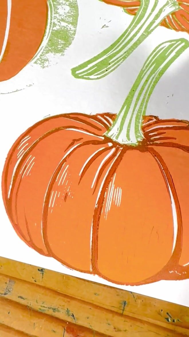 Pumpkin & Autumn Leaves Hand Printed Linocut Garland
