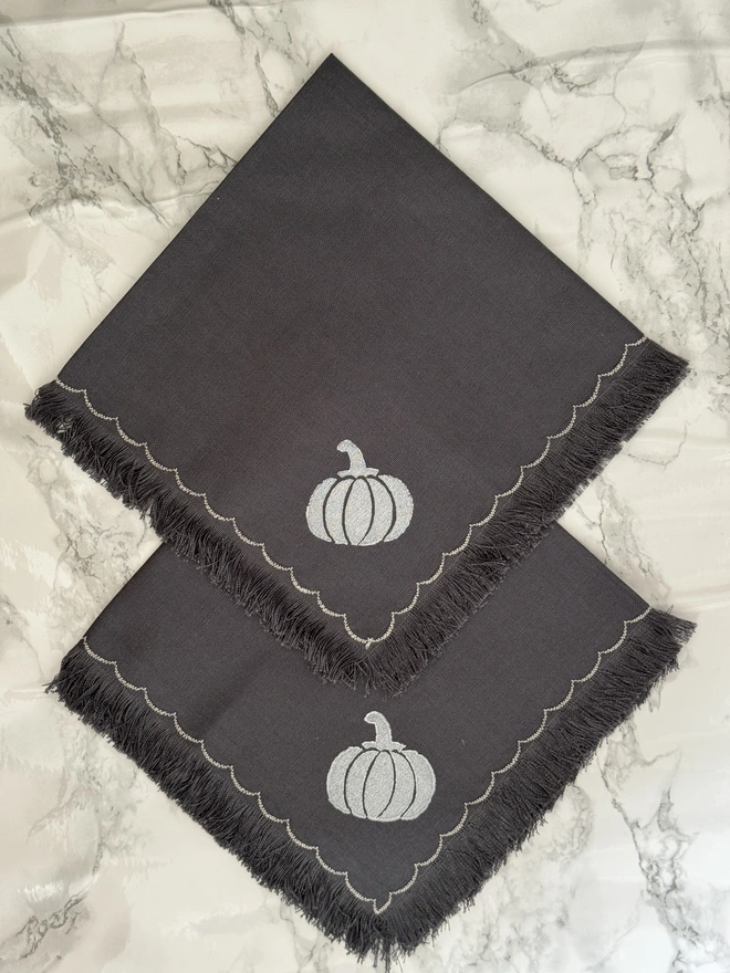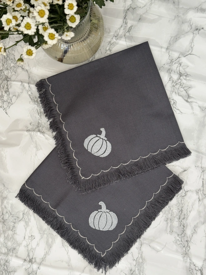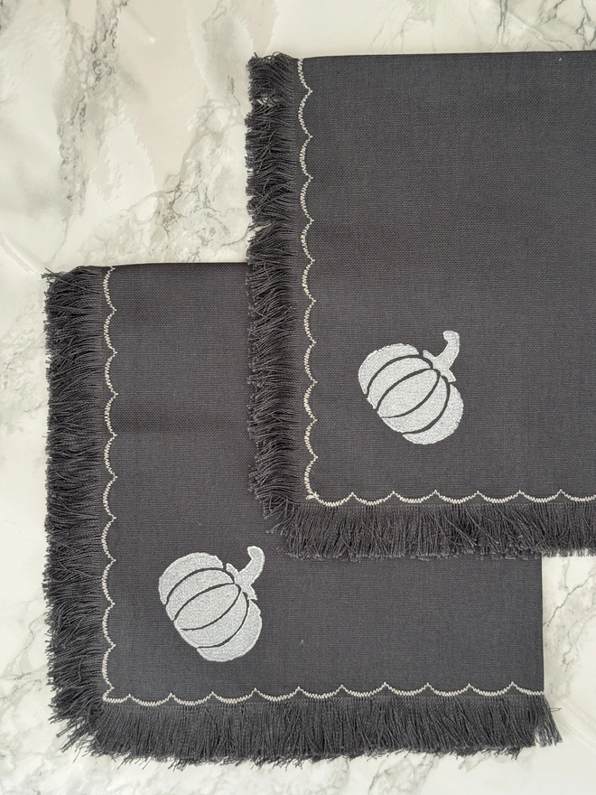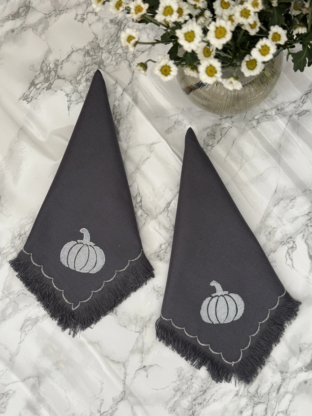 These gorgeous pumpkin block-printed fringe cloth napkins are perfect for your table decor this fall season.