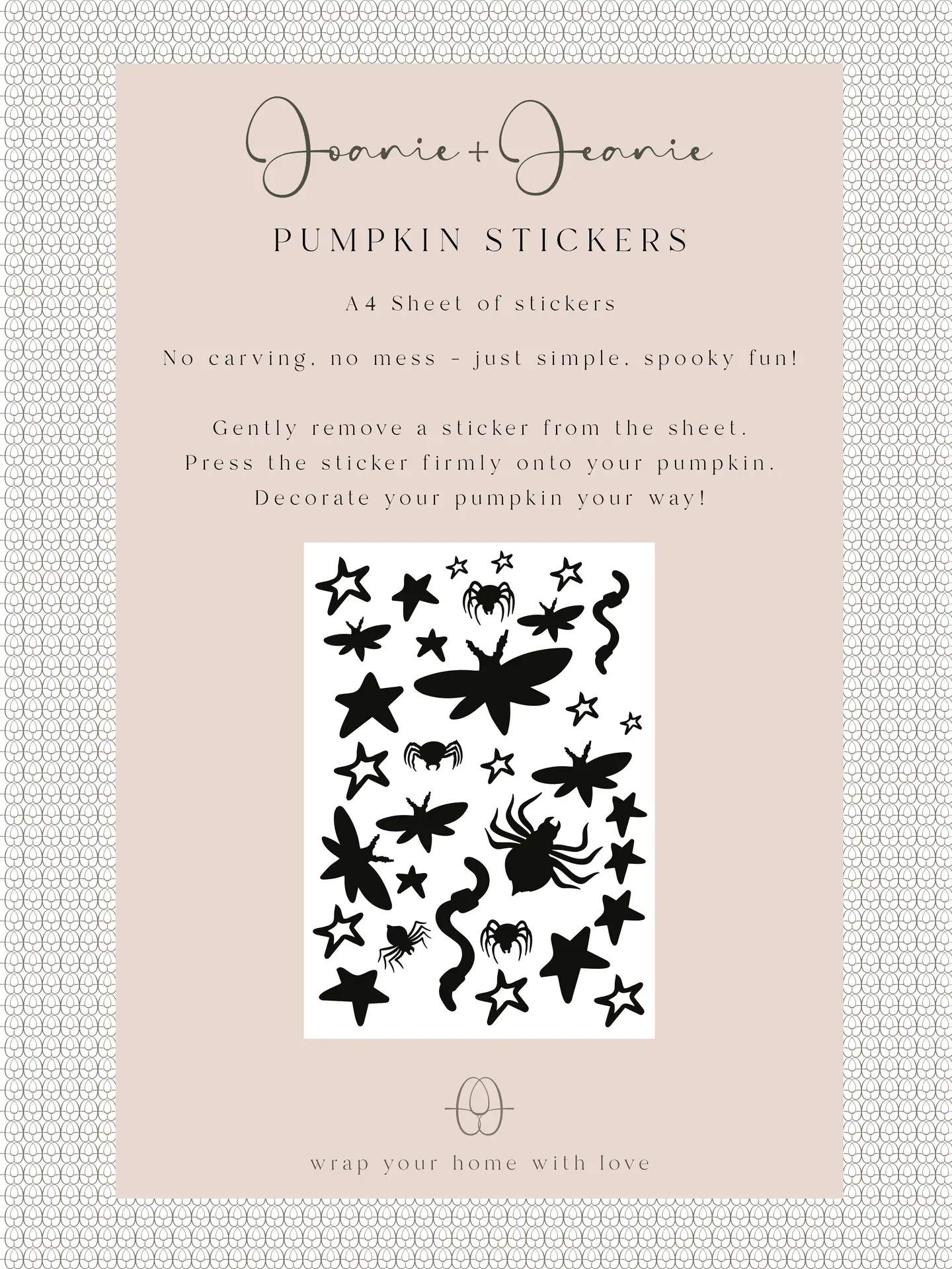 Bring your pumpkins to life with Joanie & Jeanie’s playful pumpkin stickers! Perfect for little hands and big imaginations, these easy peel-and-stick decorations make Halloween mess-free and full of fun.