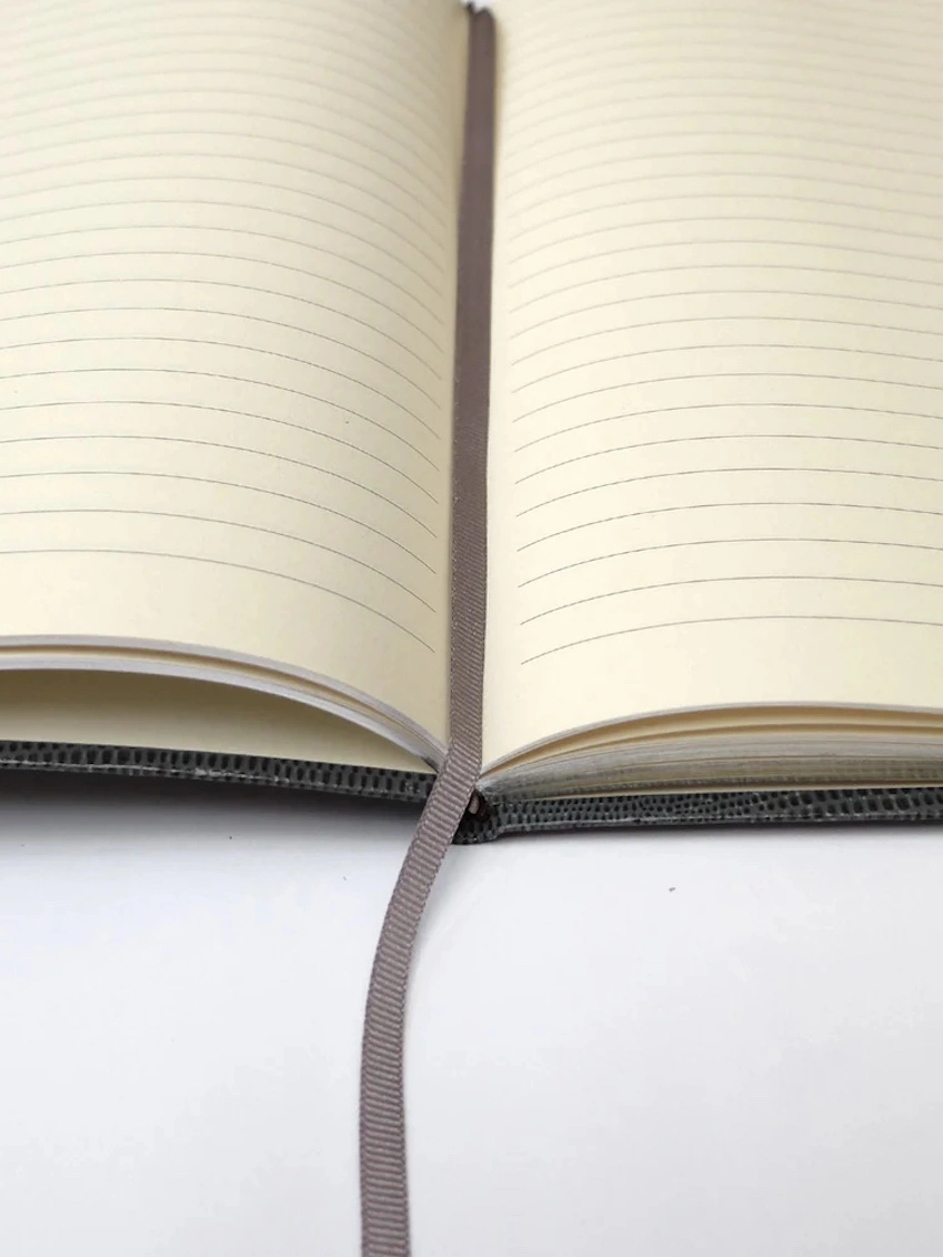 Our books and diaries are handmade in England by classically trained bookbinders, covered in faux lizard, have gold-edged paper and a grosgrain ribbon pagemarker. Our paper is FSC certified.