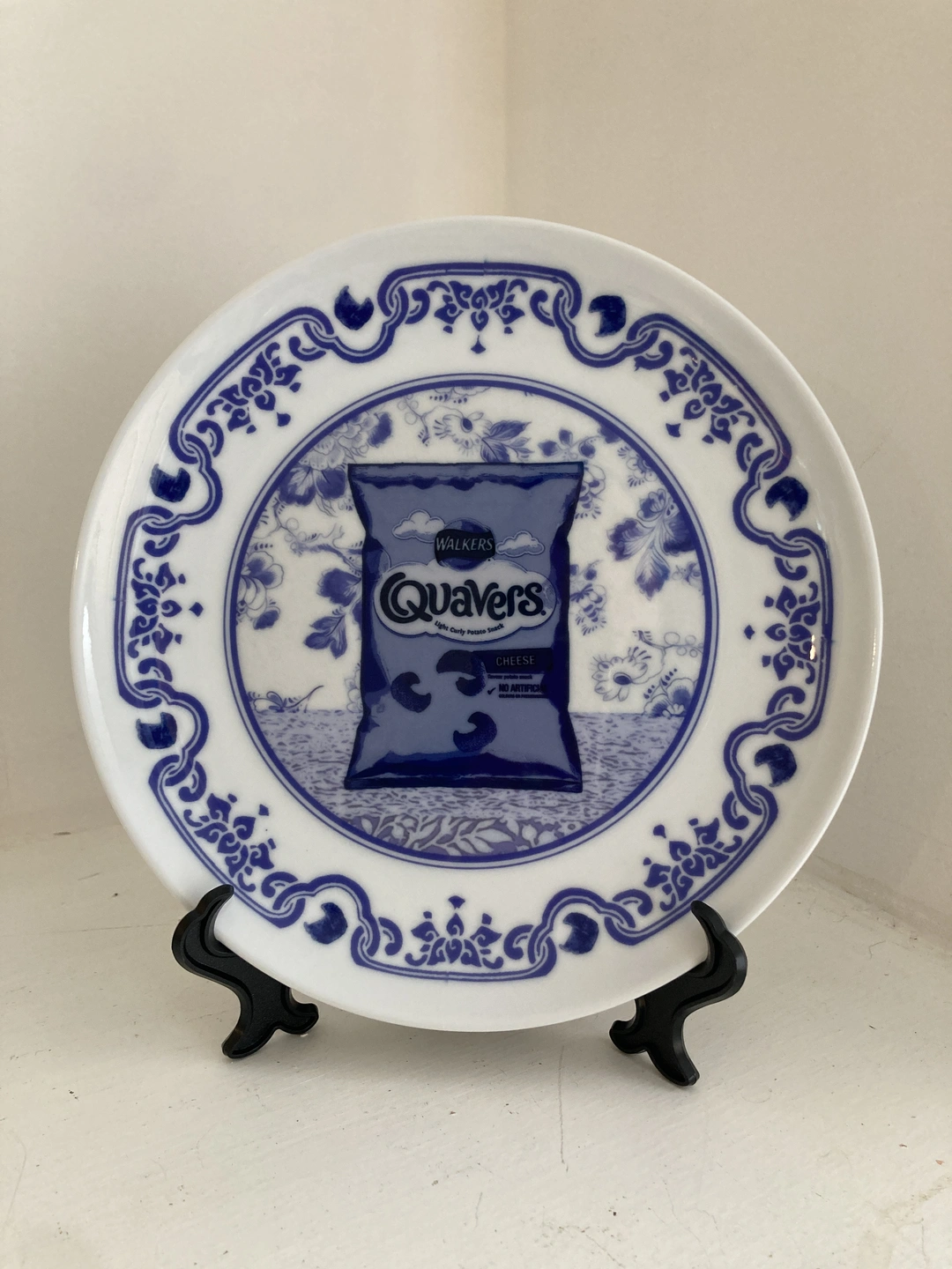If you are addicted to crisps and snacks, you could either join C&SA (Crisps and Snacks Anonymous), or you could just accept your lot and elevate your eating experience with this brand new 'Quavers' Delft style plate. Treat the crisp cruncher in your life, or maybe just treat yourself. Each plate comes supplied with a stand.