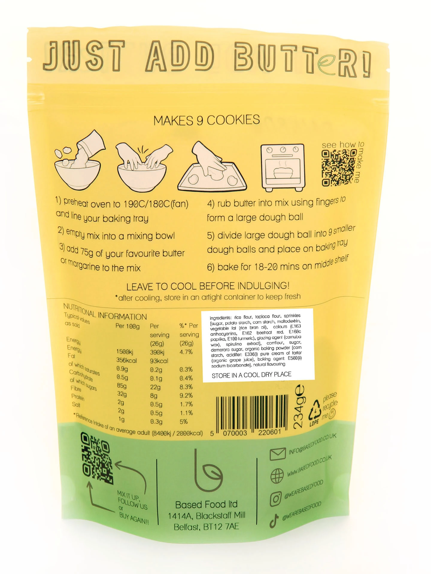 Indulge in a rainbow of flavour. Our Rainbow Cookie Mix is a delightful blend, bursting with vibrant rainbow sprinkles. This fully plant based and allergen free treat is perfect for those seeking a fun and flavourful dessert option.