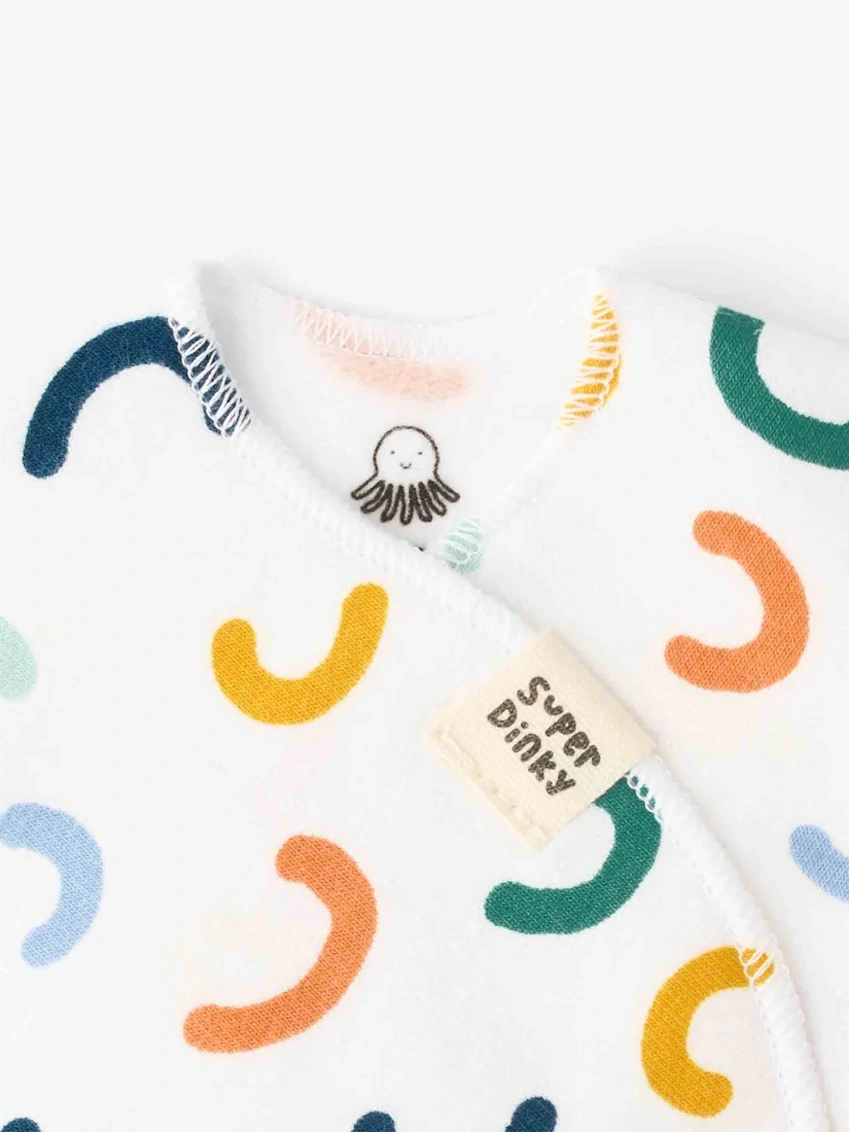 The perfect first outfit for a baby being cared for in a neonatal unit. Our organic cotton wrap vest has been specially designed for NICU/SCBU babies. All our prints are gender neutral, with a wrap feature making it easy to remove for observations by medical staff or skin to skin with parents. No harsh seams to irritate, super soft fabric with velcro that does not touch delicate skin. Back label features non toxic, vegan ink.