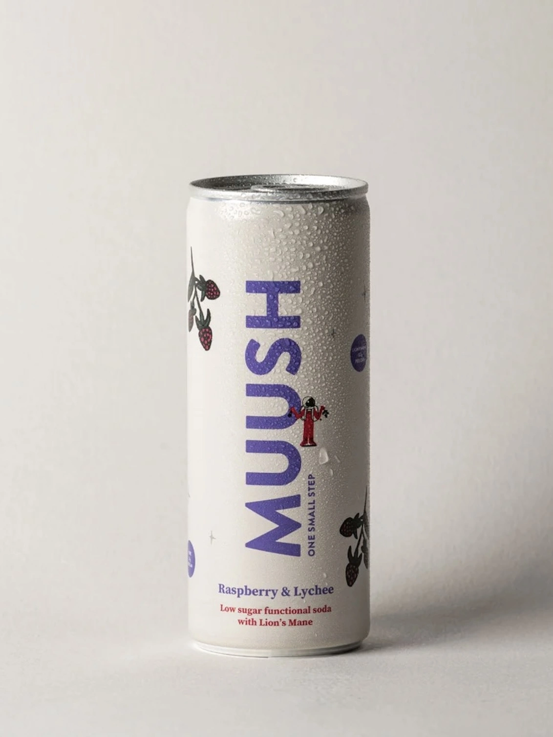 Not your average soda. A soft and sweet blend of raspberry and lychee. Infused with premium Lion’s Mane mushroom to support cognitive function, immunity and gut health.