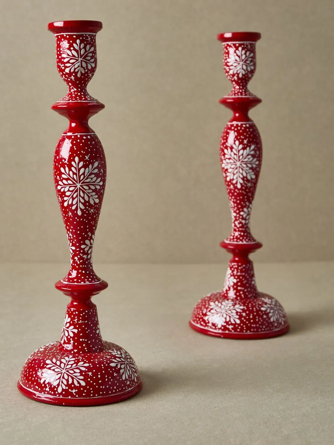 Red & White Christmas Snow Flake | 12″ Candle Stick Holder