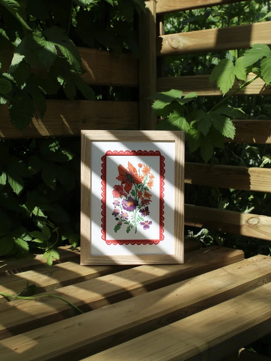 A high-quality art print, inspired by the beauty of botanicals, and their intricate details, framed in a signature hand-painted scallop mount.