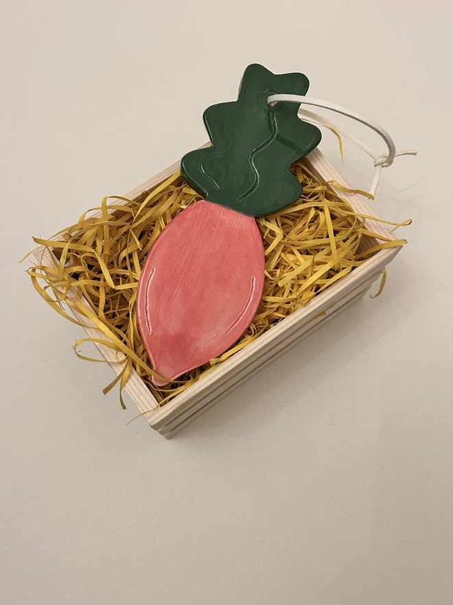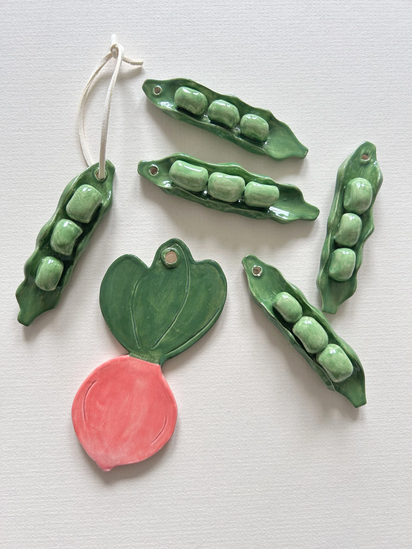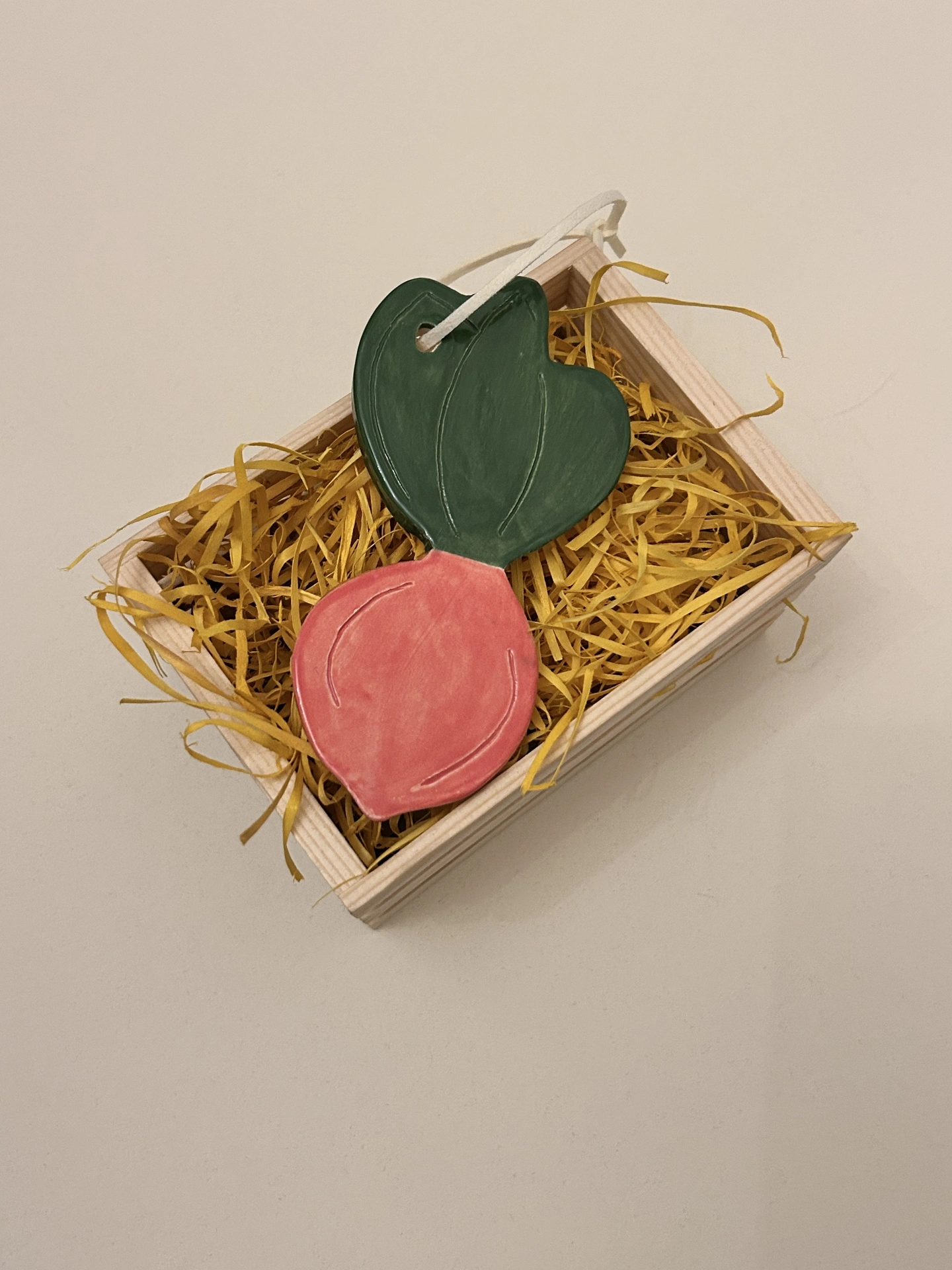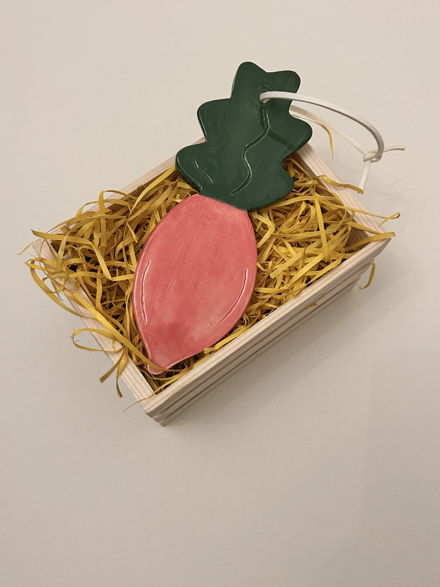 Bring a little kitchen-to-Christmas magic with these ceramic radishes. Each one is hand-crafted and glazed by hand. A fun, thoughtful gift for anyone who loves good food (and great decorations). Comes with a string, ready to hang on your tree.