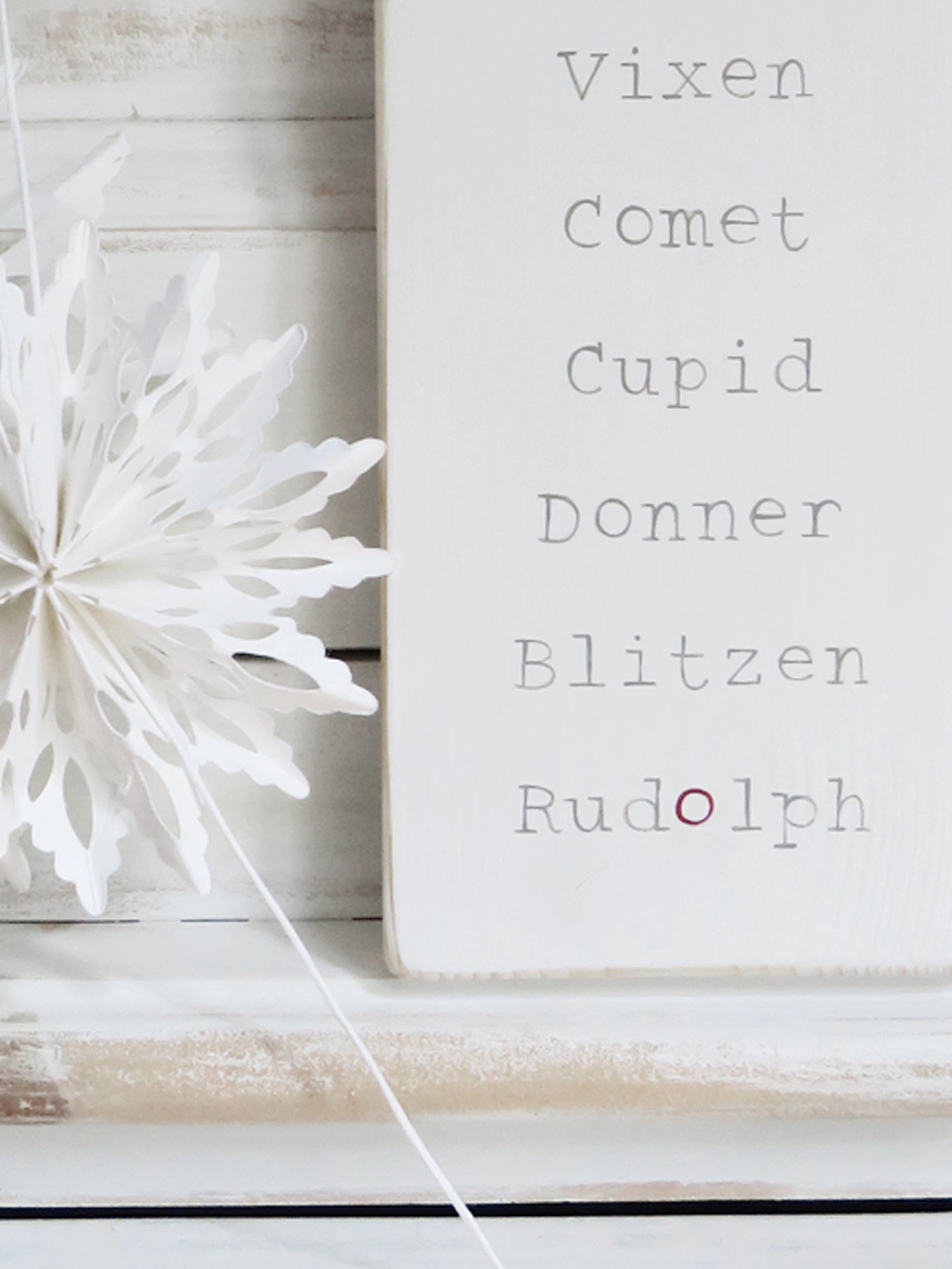 A handy list to help you remember all of Santa's reindeer. This little sign is a sweet alternative to your traditional Christmas decorations.