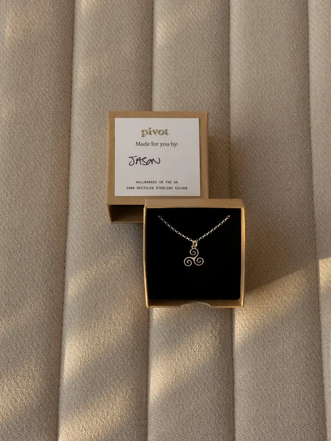 Recycled sterling silver pendants are presented in an FSC certified gift box