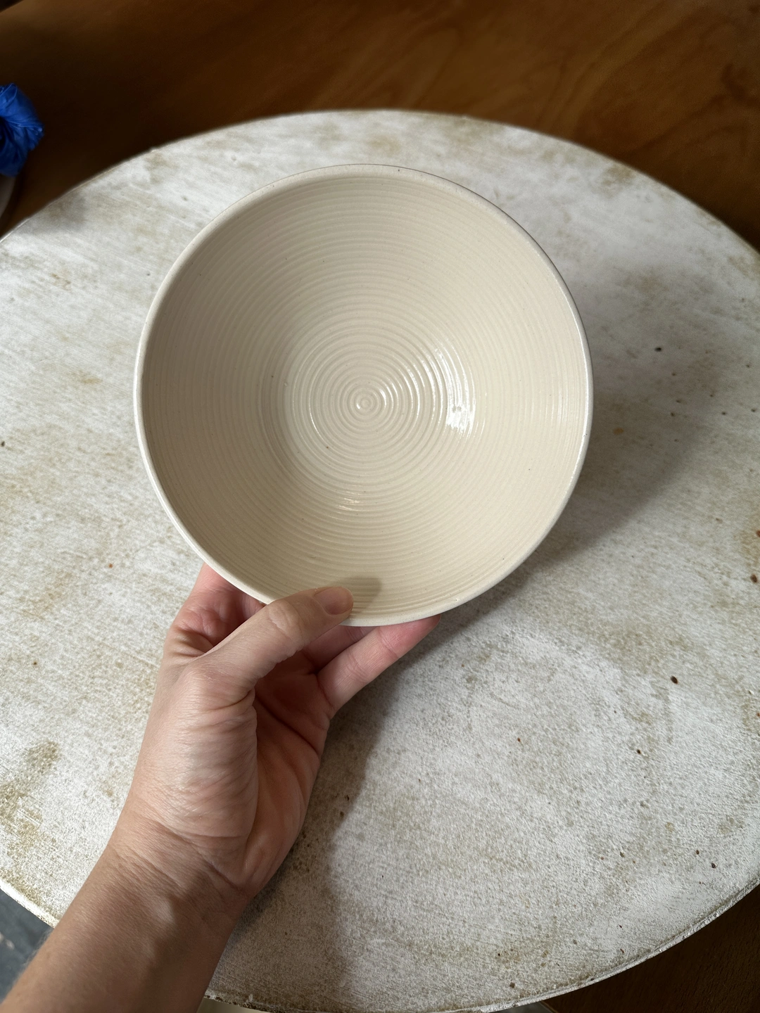 A medium sized bowl designed for breakfast, other meals optional! Thrown and carved on the wheel. Available in four colours.