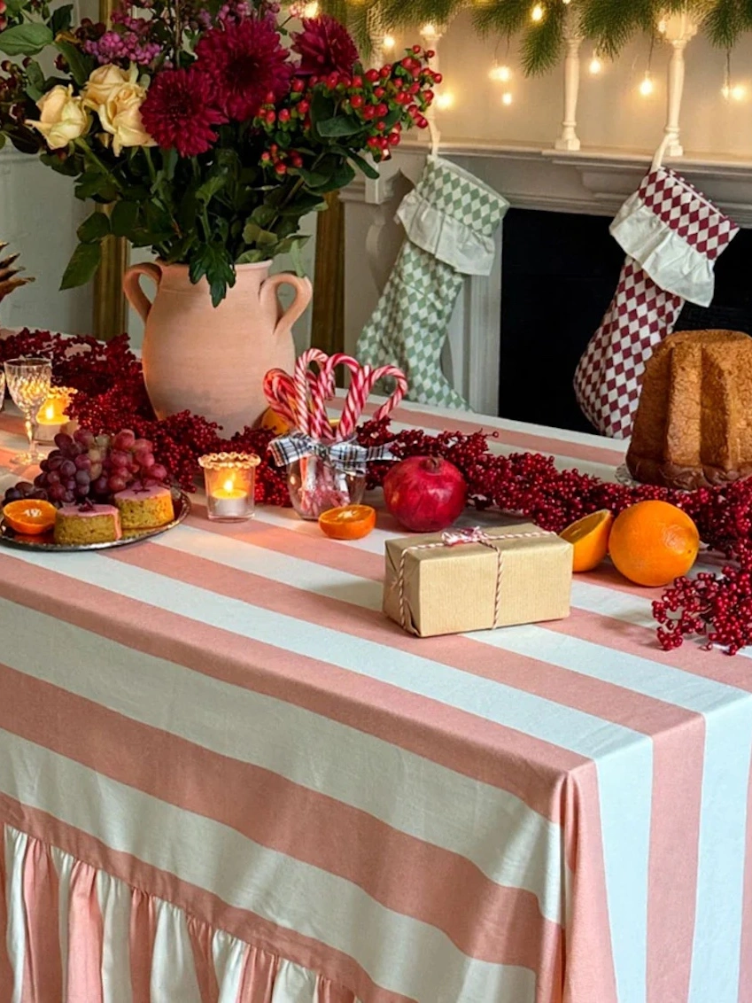 Turn any meal into a joyful gathering with our carefully crafted tablecloths. Designed in our West London Studio, these stylish hand-painted striped linens go beyond being mere table coverings they're an open invitation to savour moments beyond the dining experience. The bold stripes and playful ruffled border provide a unique touch, allowing your customers to choose between a bold, maximalist look or an elegantly tailored feel. Designed to be the centrepiece of every meal, be it a long lunch or a late-night get-together. With pre-samples flying off the shelves in just 48 hours, these tablecloths are set to be this spring and summer's must-have items. Secure them now to enhance your inventory and meet the trendsetting desires of your customers.