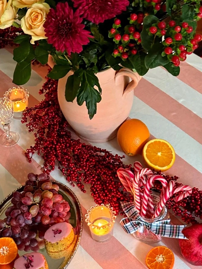 Turn any meal into a joyful gathering with our carefully crafted tablecloths. Designed in our West London Studio, these stylish hand-painted striped linens go beyond being mere table coverings they're an open invitation to savour moments beyond the dining...
