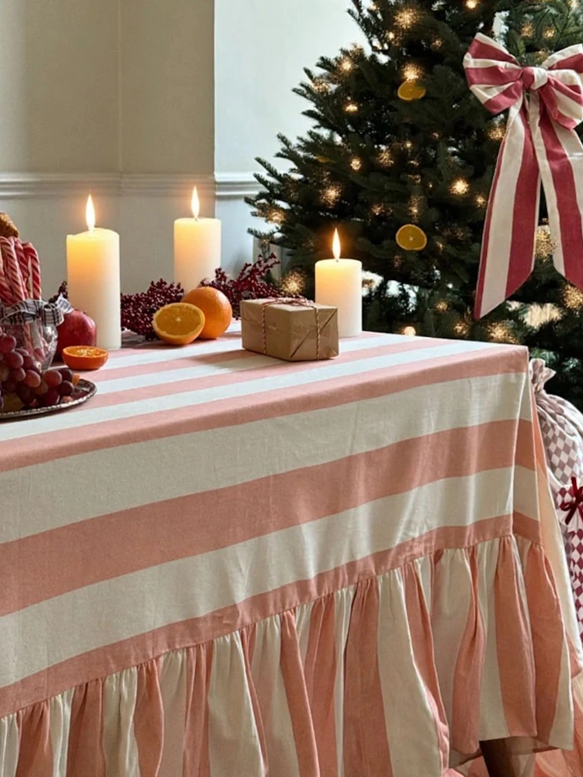 Riviera Pink Striped Rectangle Tablecloth Ruffle