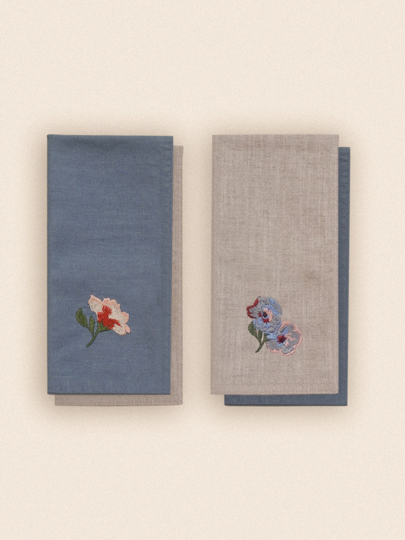 Elevate your dining table with a set of linen embroidered napkins featuring delicate Rose embroideries. These are sure to bring a touch of charm to any table setting.