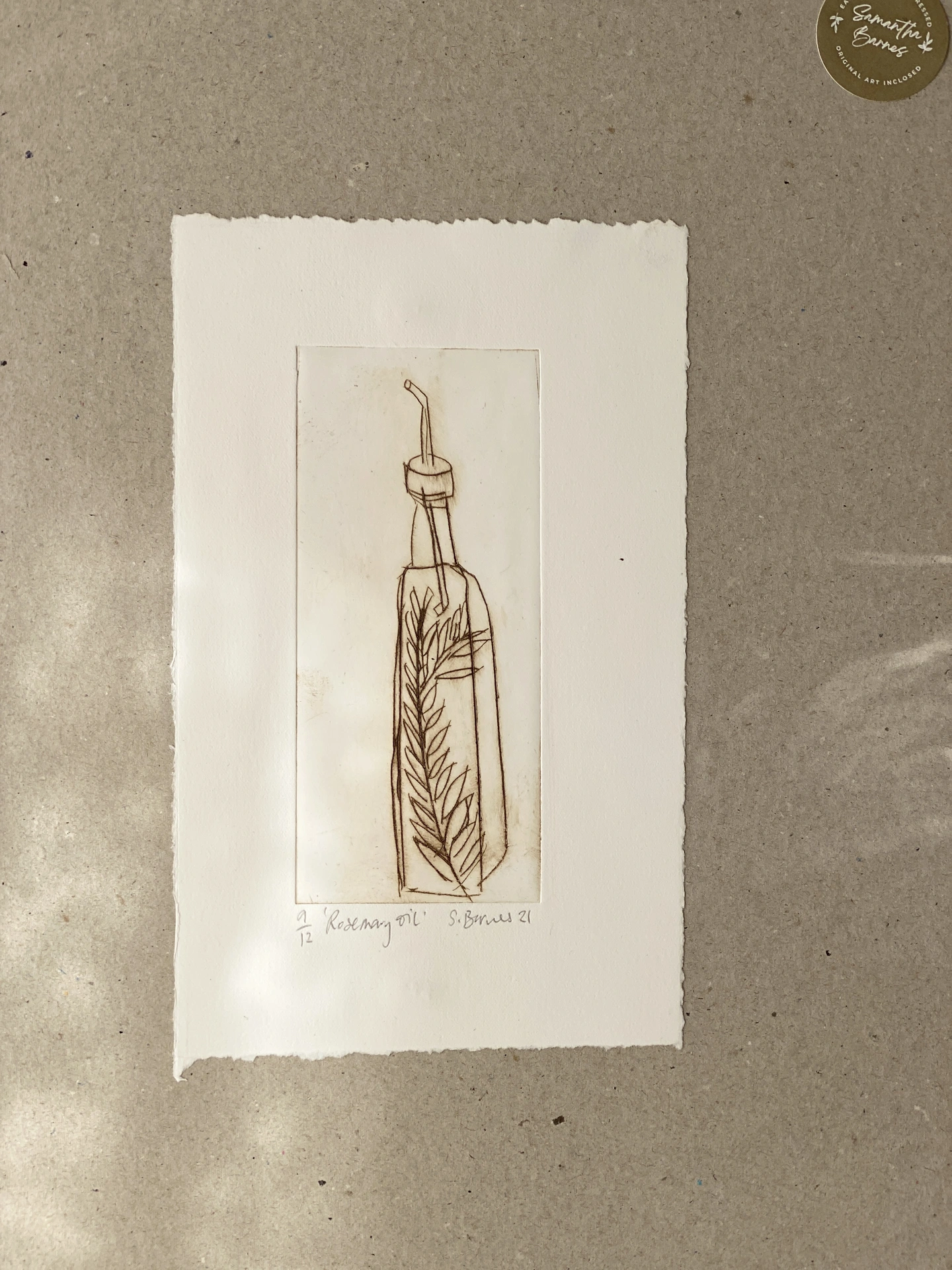 'Rosemary Oil'. Hand pulled Drypoint Print