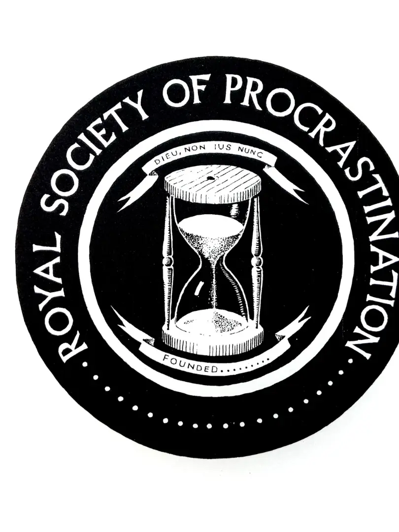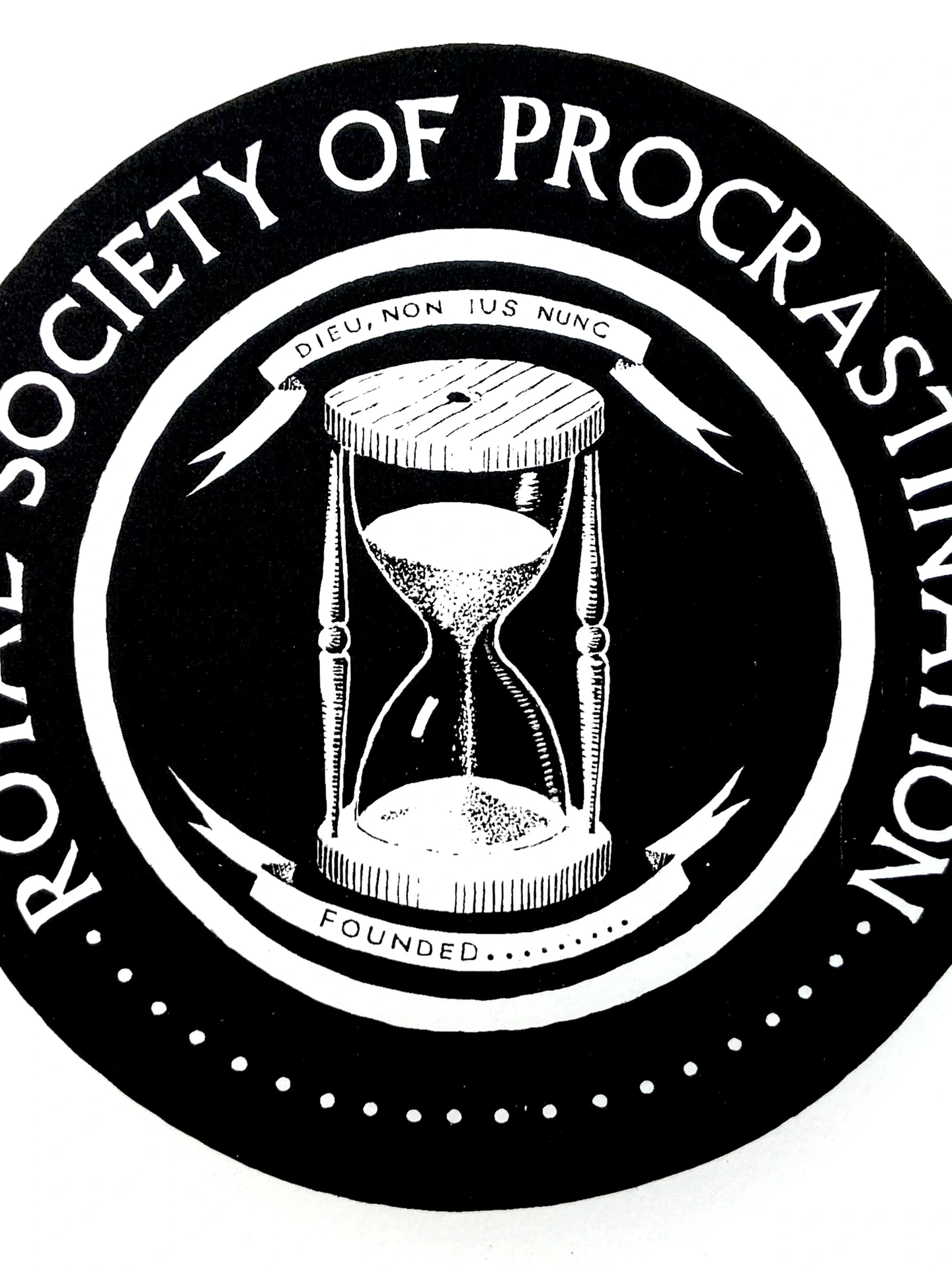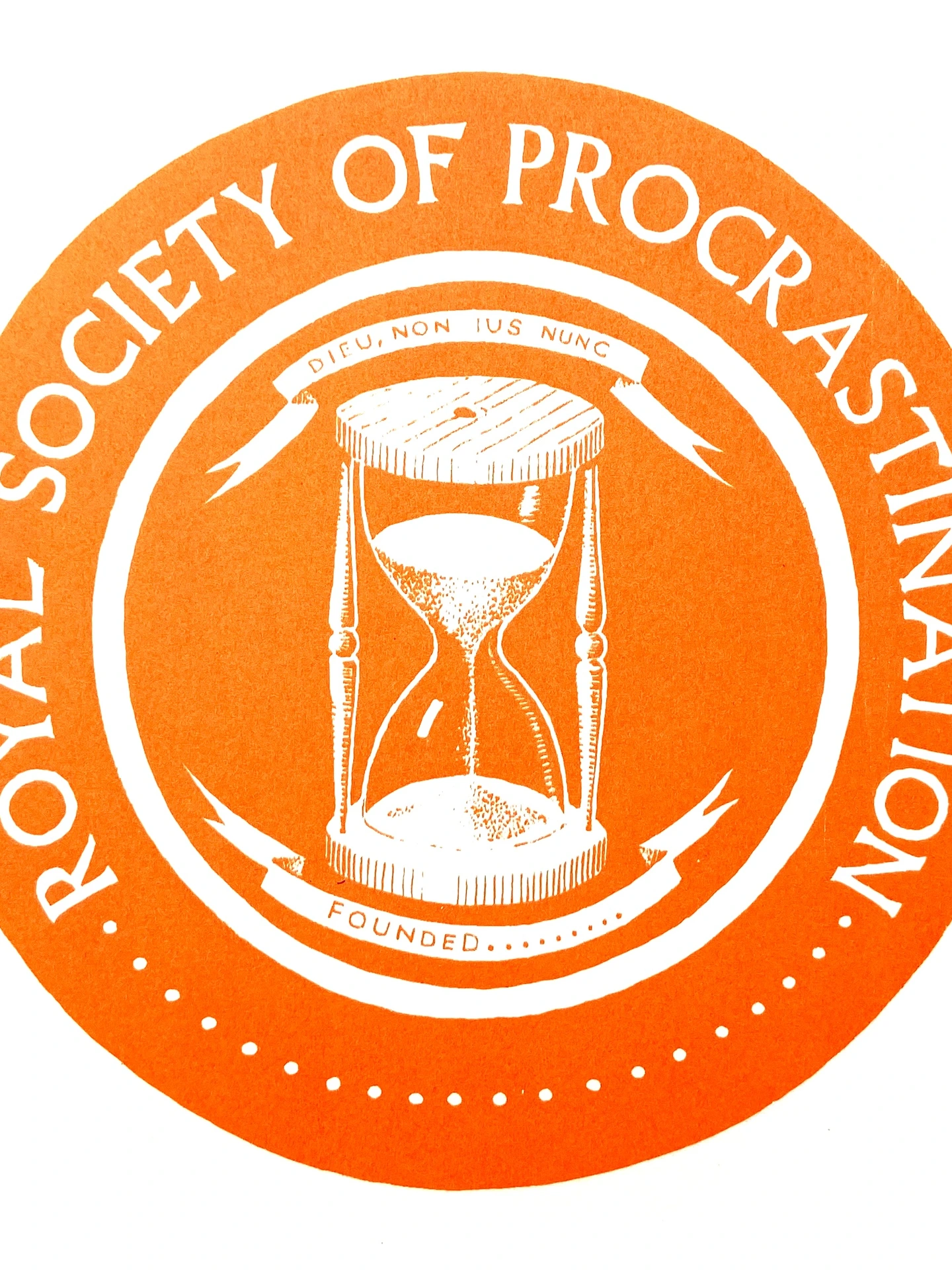 'Royal Society Of Procrastination' Screen Print from edition of 50 available in orange, blue, or black.