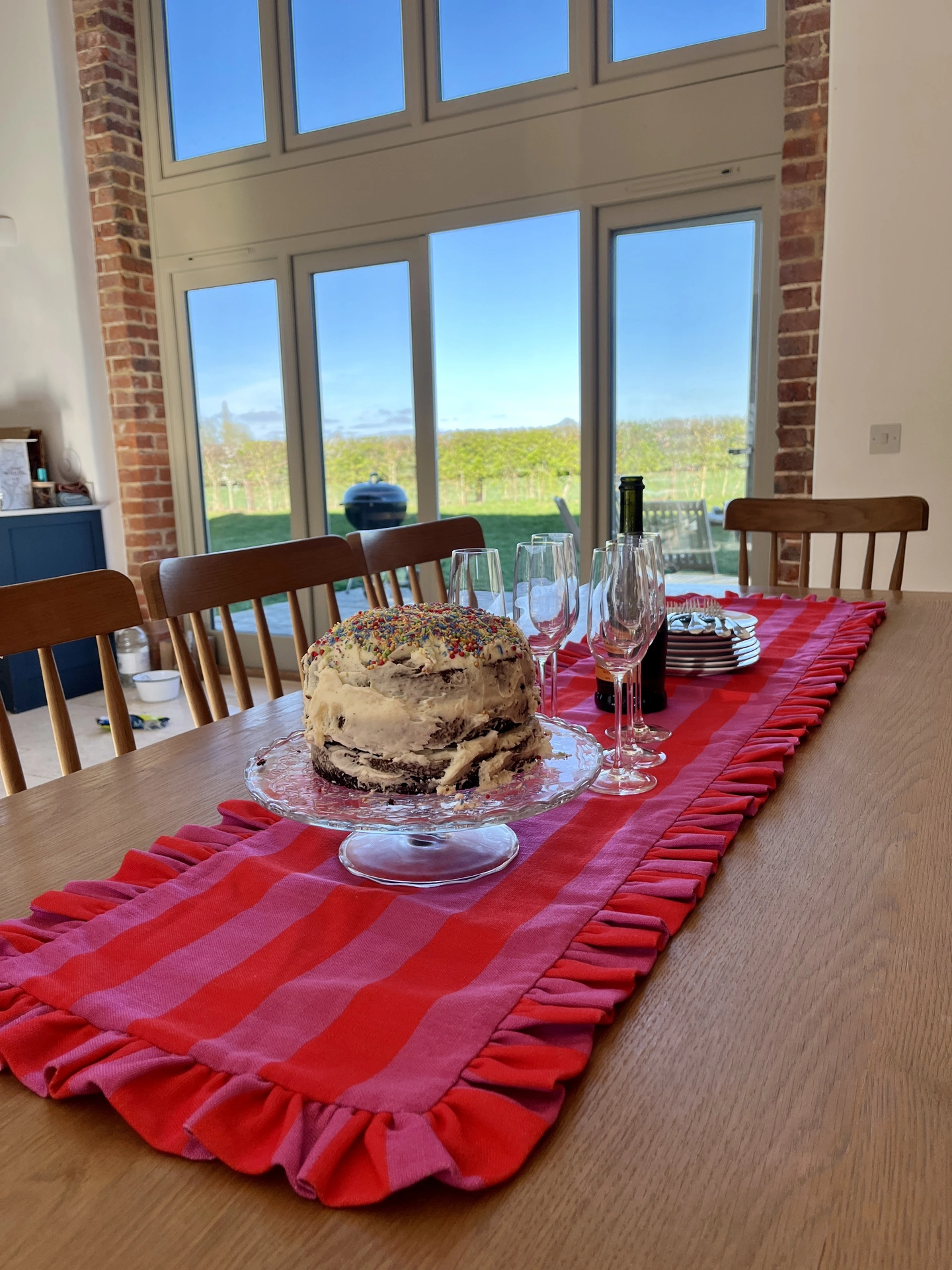 Beautifully ruffled, our stripe table runners are handmade to order in 4 colours.