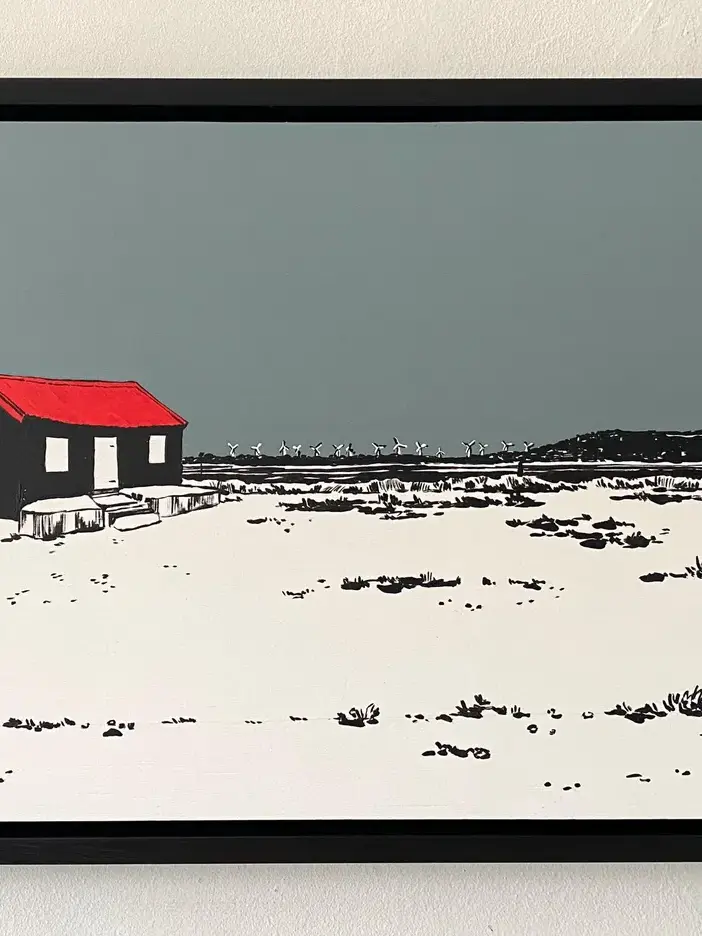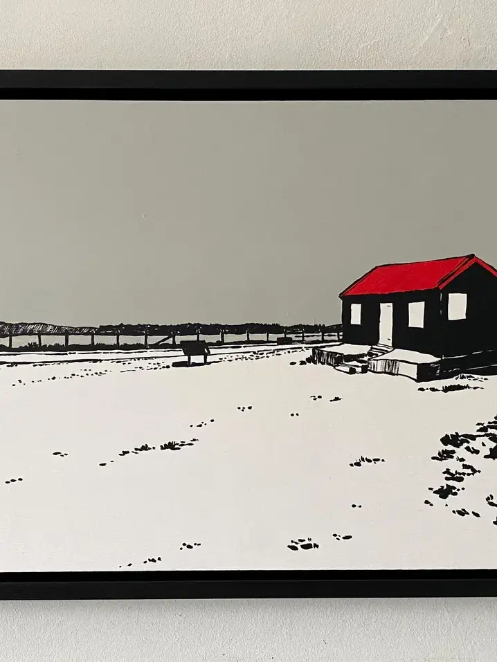 The red-roofed fishing shed is a bright landmark on the landscape of Rye harbour nature reserve, which helps boats to navigate up river from the sea.