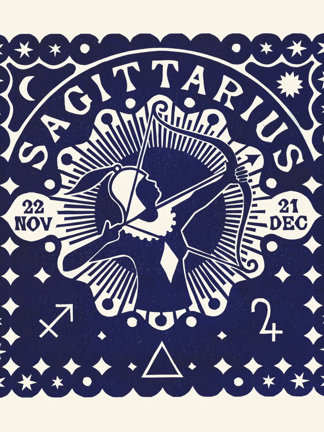 Shown on this print is an approximate date span for Sagittarius of November 22 – December 21. The dates may vary slightly each year due to Earth's orbit and leap years, so those born near the start or end should check their birth chart to confirm their sign.