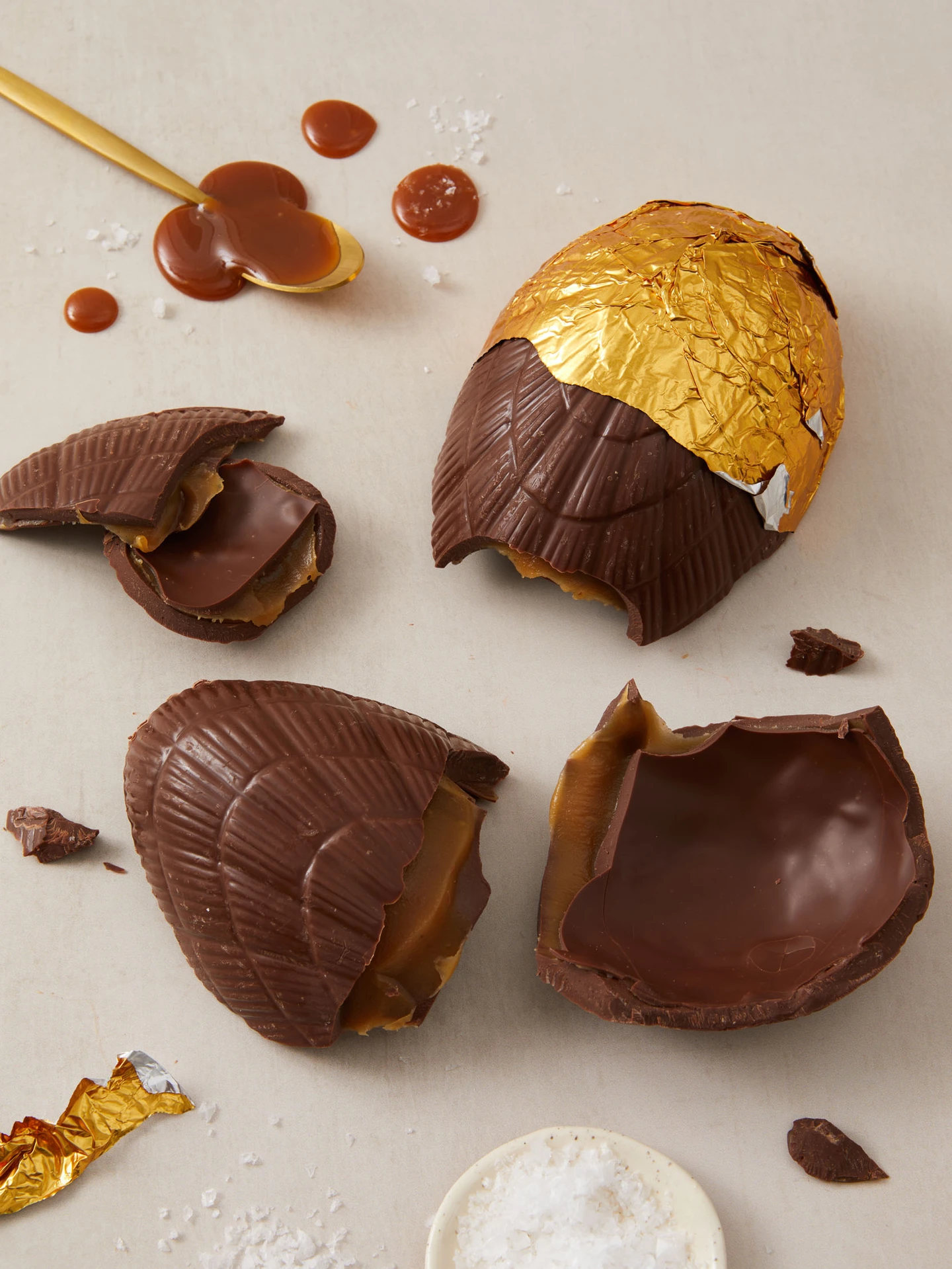 Our limited edition Salted Caramel 45% Cameroonian milk chocolate Easter egg with a thick layer of salted caramel throughout - buttery, sweet, and perfectly balanced. Finished with a sprinkling of salt.