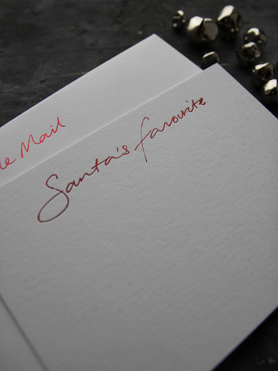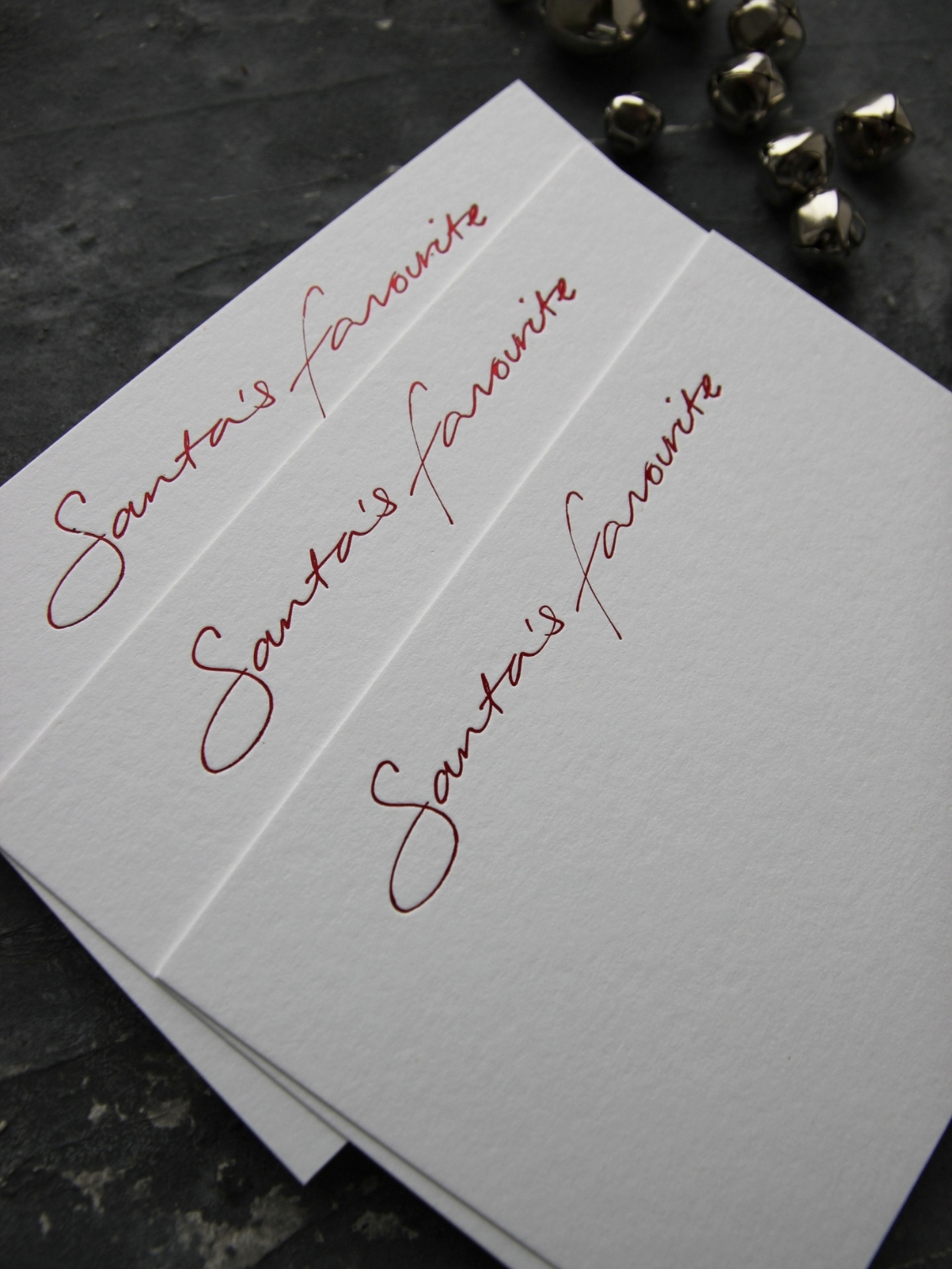 Paired with a matching envelope featuring a hand-foiled red “North Pole Mail” message, ready to be delivered under the tree.