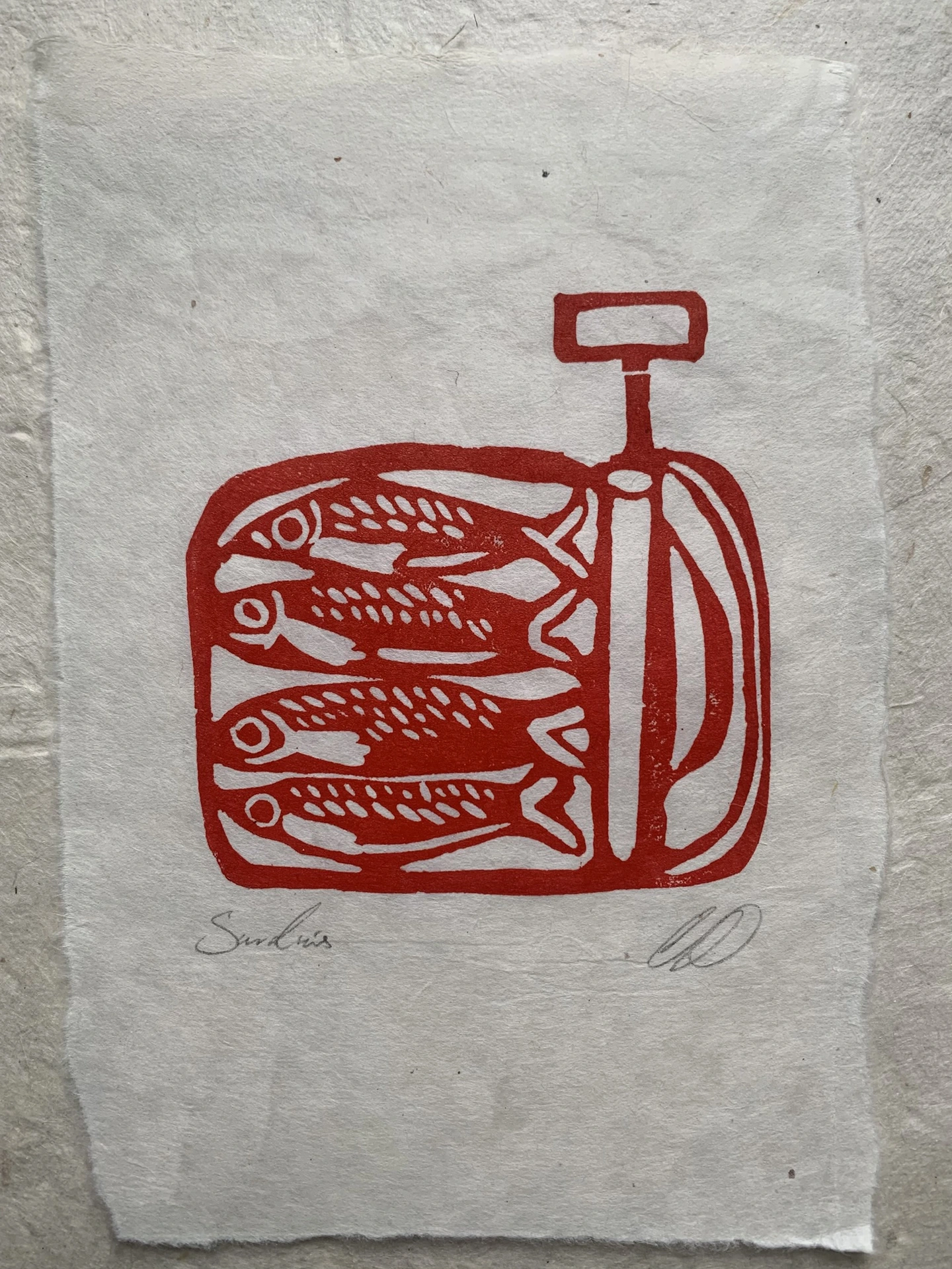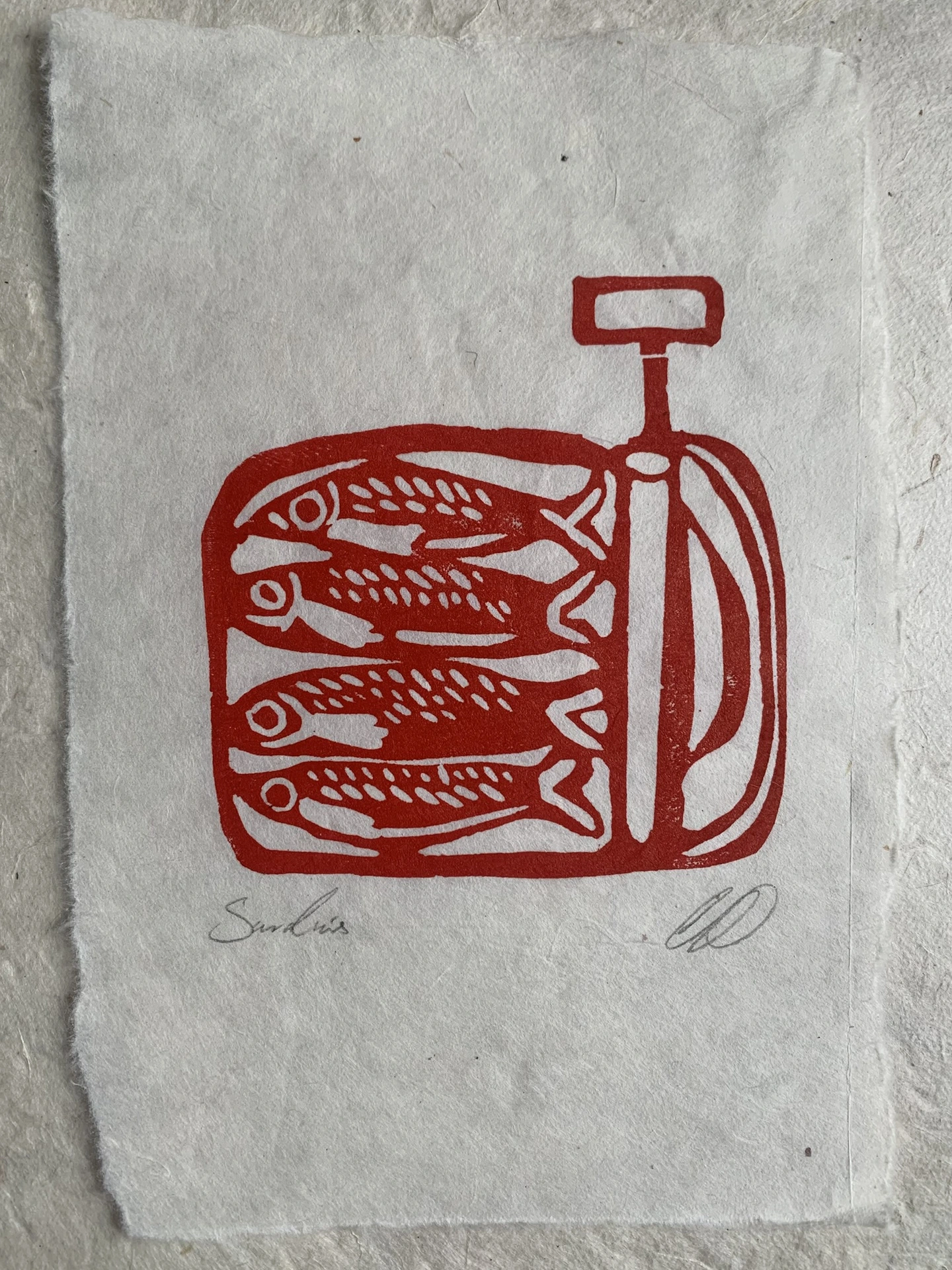 Sardine Lino Print On Handmade Paper