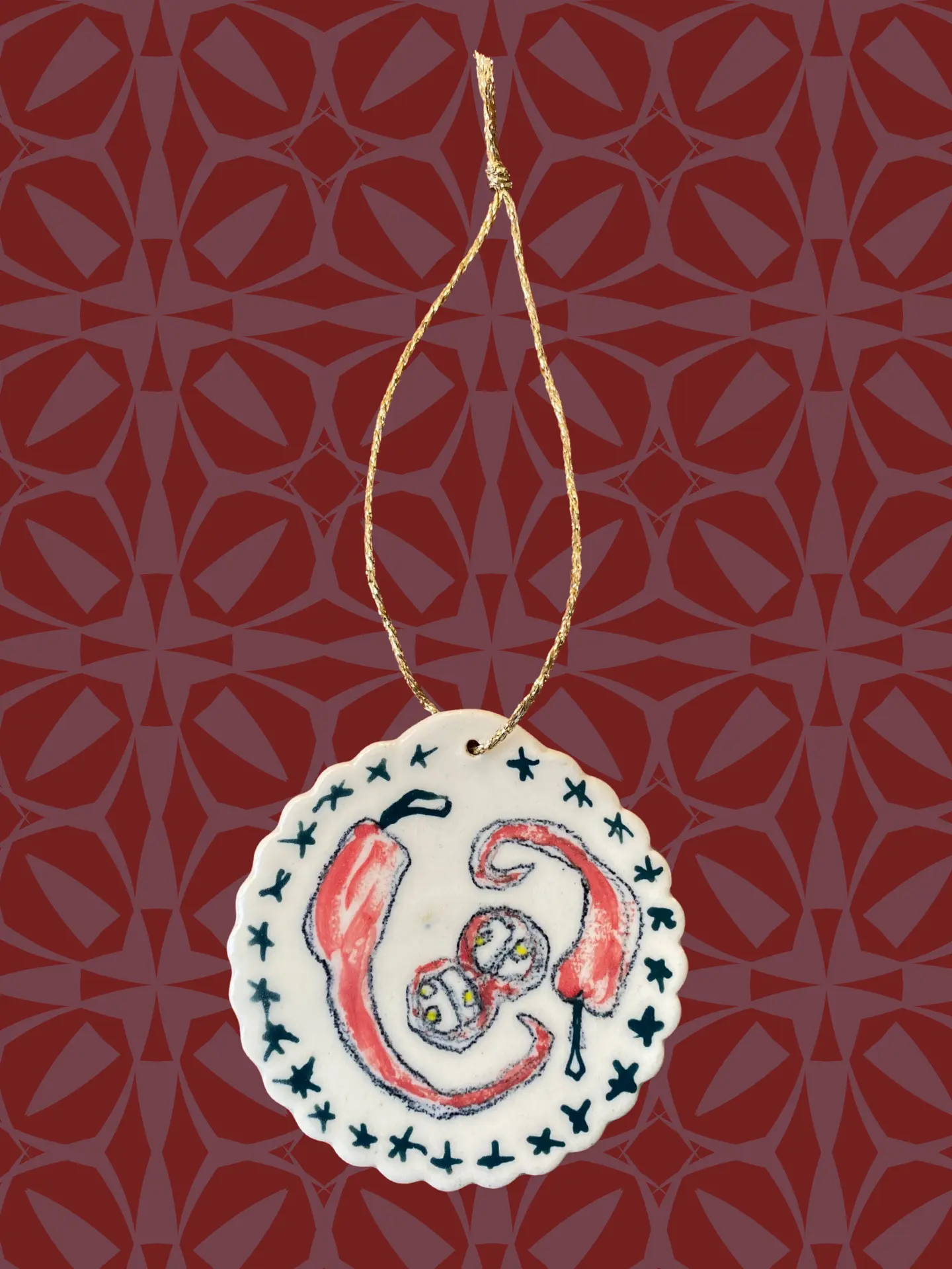 Add a unique touch to your holiday decor with Mara Wanda handmade & hand-painted ceramic Christmas ornaments! Featuring delightful designs like vibrant chillies and charming sardines, each ornament is a one-of-a-kind masterpiece. Perfect for gift-giving or as a festive addition to your tree, these ceramics bring joy and artistry into your celebrations. Embrace the spirit of Christmas with these enchanting, handcrafted treasures!