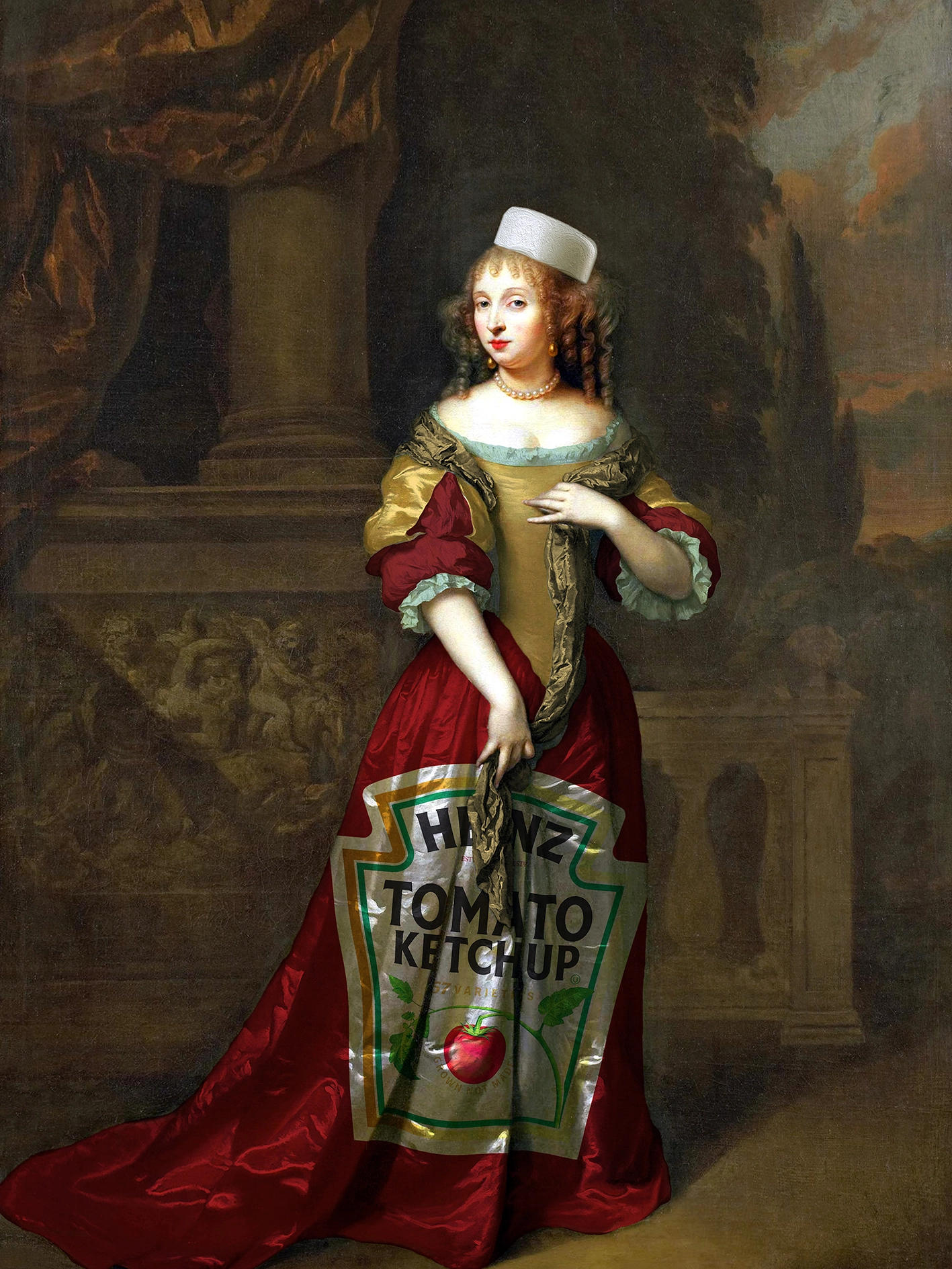 Part of a large ongoing series of works called The Product Placement Project. Humorous & fun Pop-Surrealist work exploring the connections and boundaries between art and advertising and a reflection on the functions of fashion & clothing