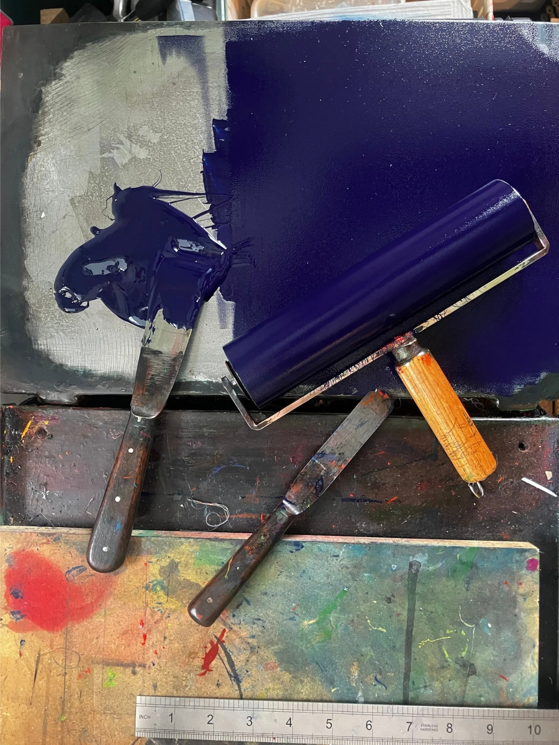 This one colour open edition linocut is hand inked in ultramarine using vegetable oil based ink on FSC-certified 350gsm off-white paper.