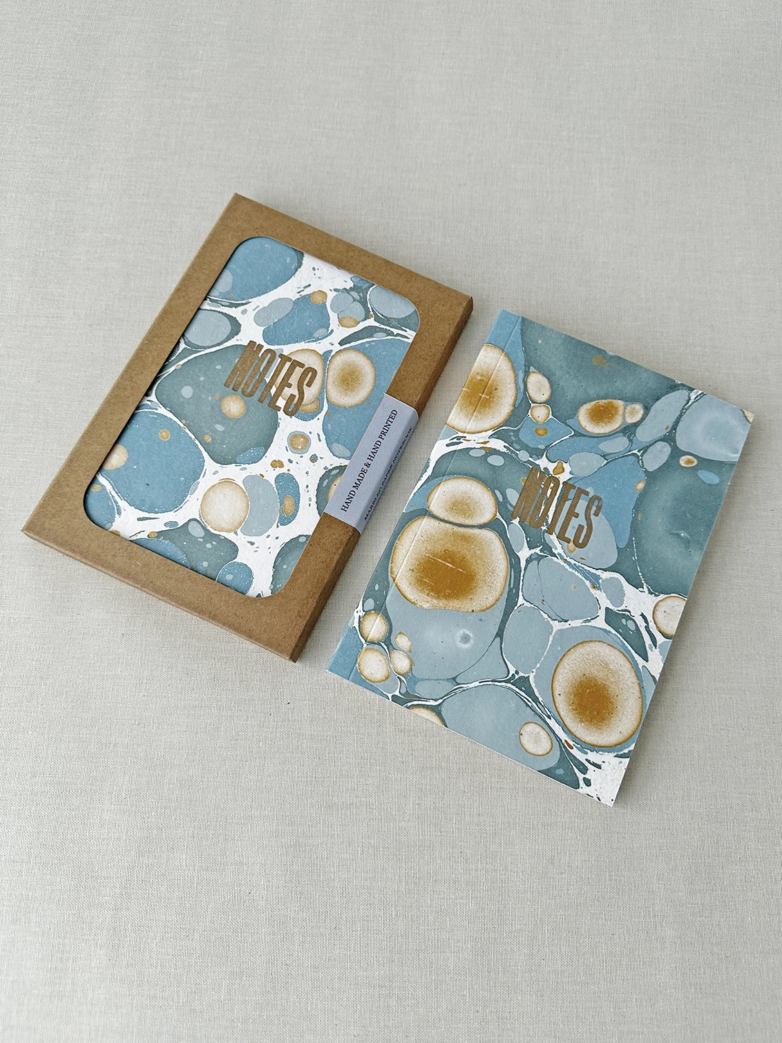 Letterpress printed notebook with an original hand marbled cover on thick handmade paper - each book is unique.