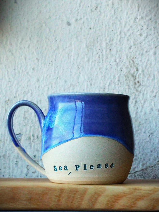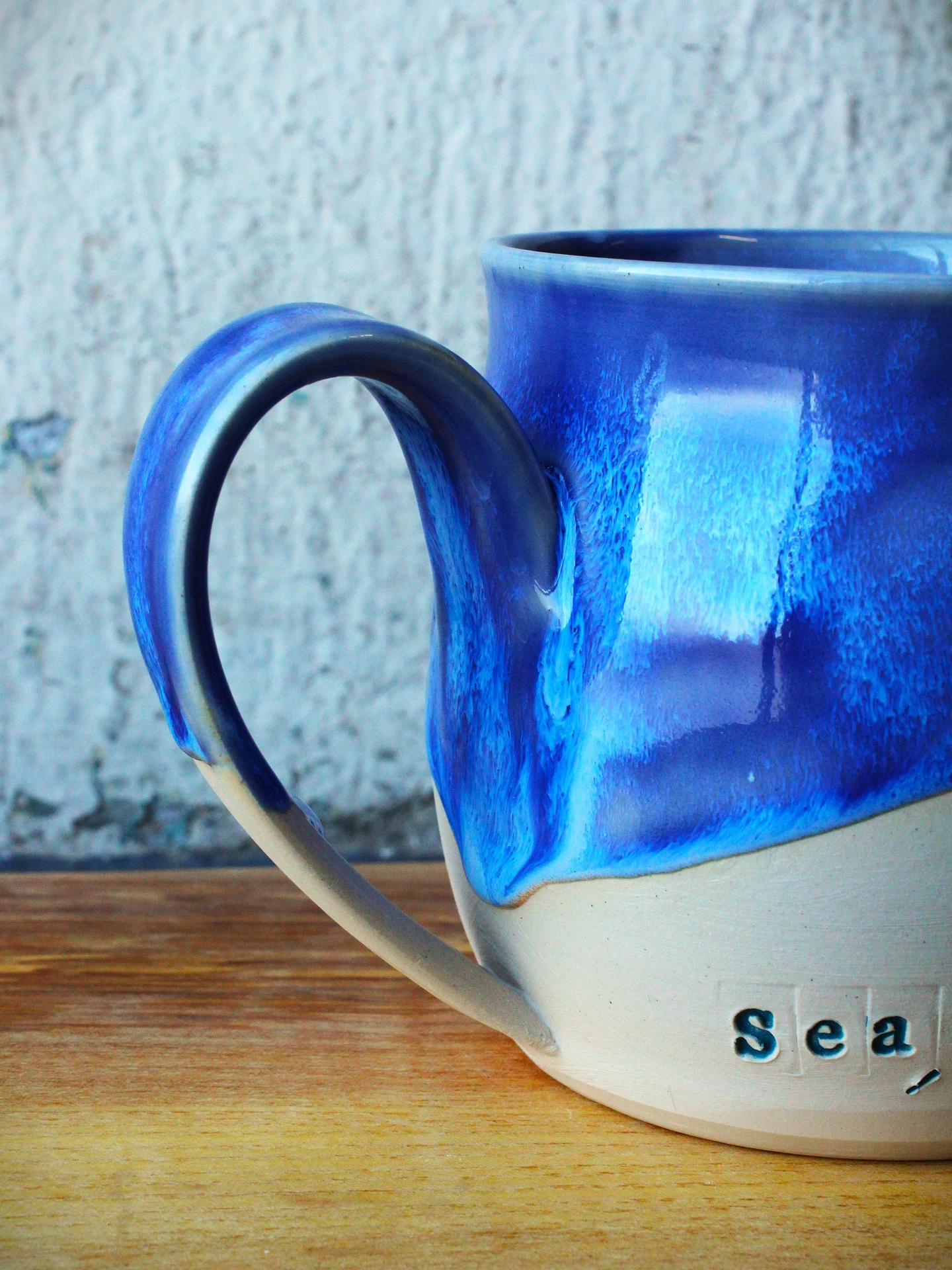 Wheel thrown, stamp design and hand glazed. These pieces are made using durable high fire stoneware clay and are made to withstand daily use.