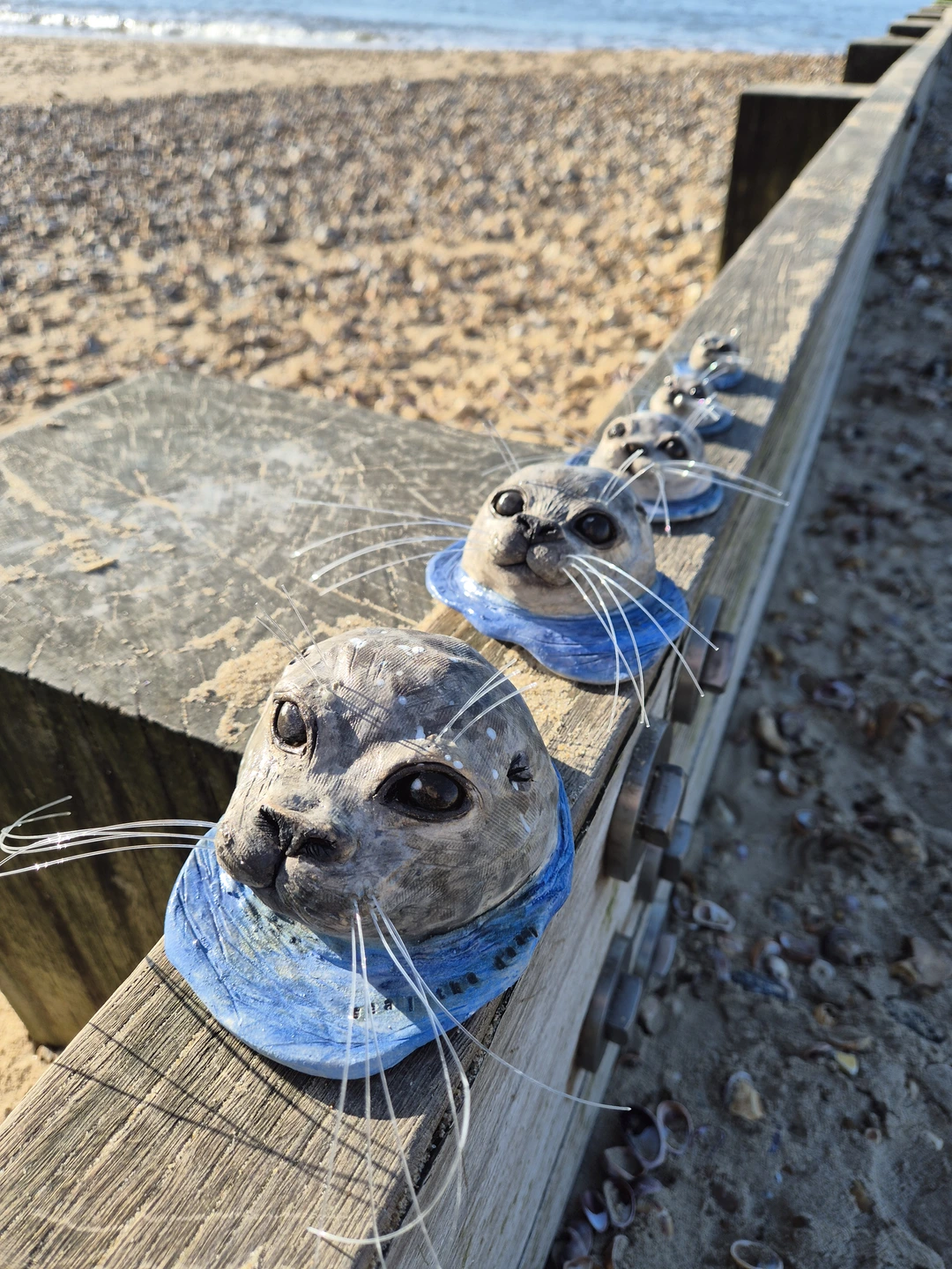 This wonderful selection of seal sculptures have been inspired by an actual seal encounter that Emily and her friends experienced when taking a dip in the Bournemouth sea last January. They are based on a friendly seal that bobbed it's head up to say hello when they were in the water.