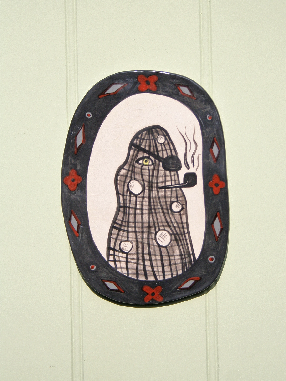 Handmade with earthenware clay,slips and glaze. Each design has a plate hanger attached to the back, to hang from a screw or hook. Designed to be posted as large letter postage