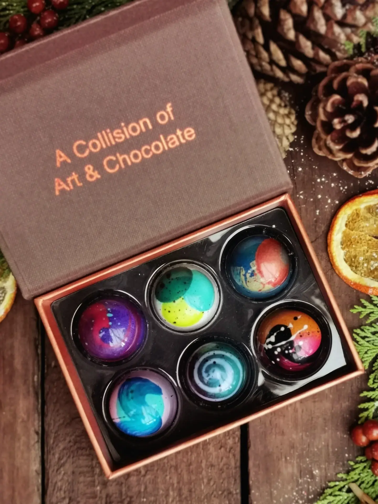 The Wood Row Seasonal Collection box! A Box of 6, 12, 15, or 24, each box comes with a selection of handmade, beautiful chocolate bon bons - including multiple Great Taste Award winners.