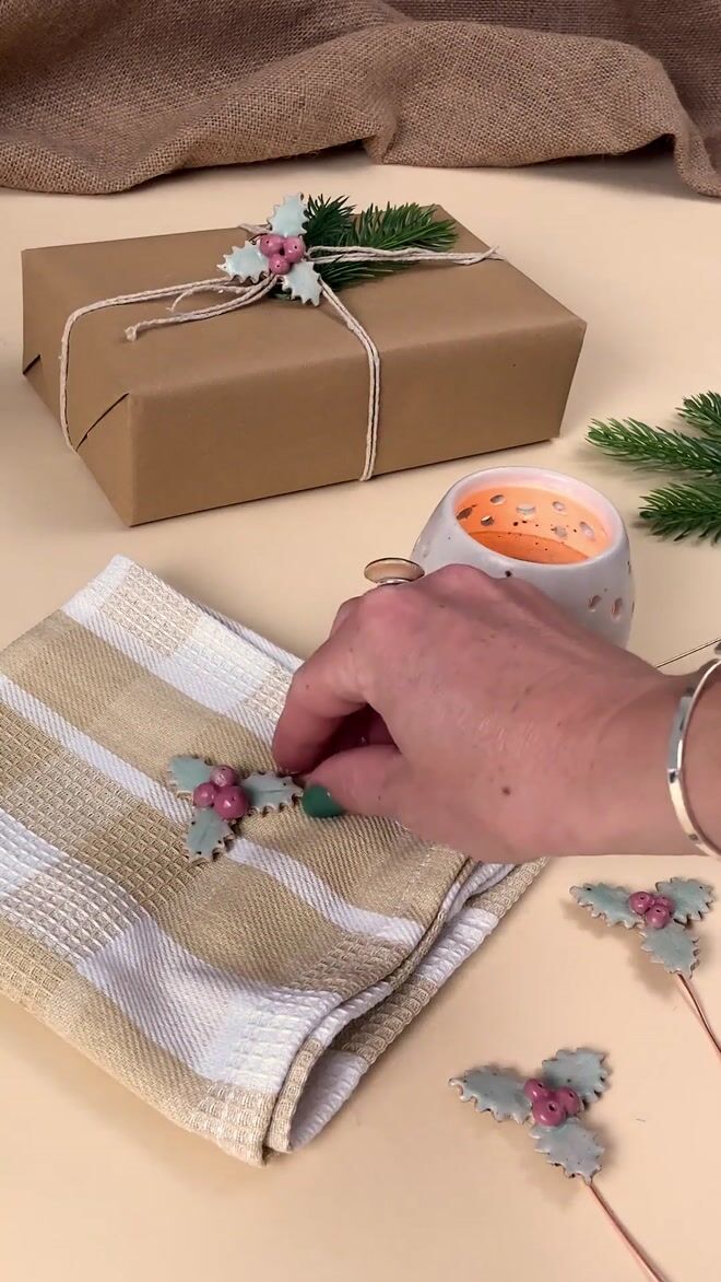 Add an element of festive charm with our handmade ceramic holly decorations, crafted in our Dartmoor studio. Each piece is set on a flexible copper wire, making it easy to shape and versatile: wrap it around a branch of your Christmas tree, style it as a napkin or placename holder, or tuck it into a plant pot for a seasonal accent. No two are exactly the same, giving each decoration its own unique character. A thoughtful, reusable and eco-friendly piece to enjoy year after year.