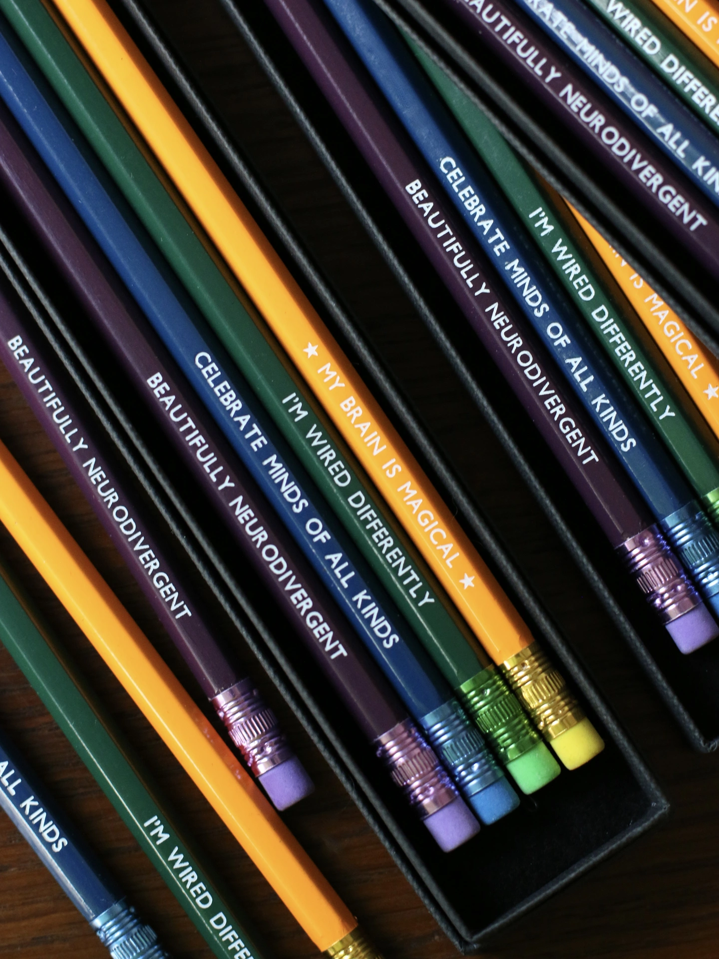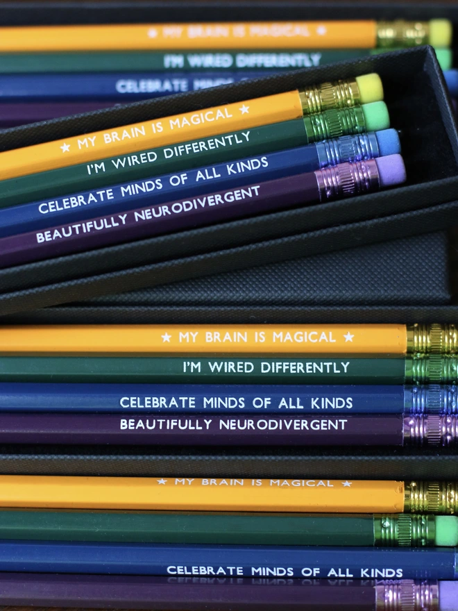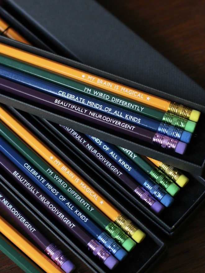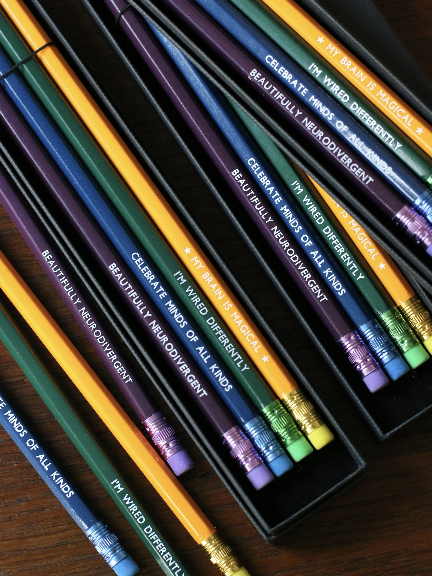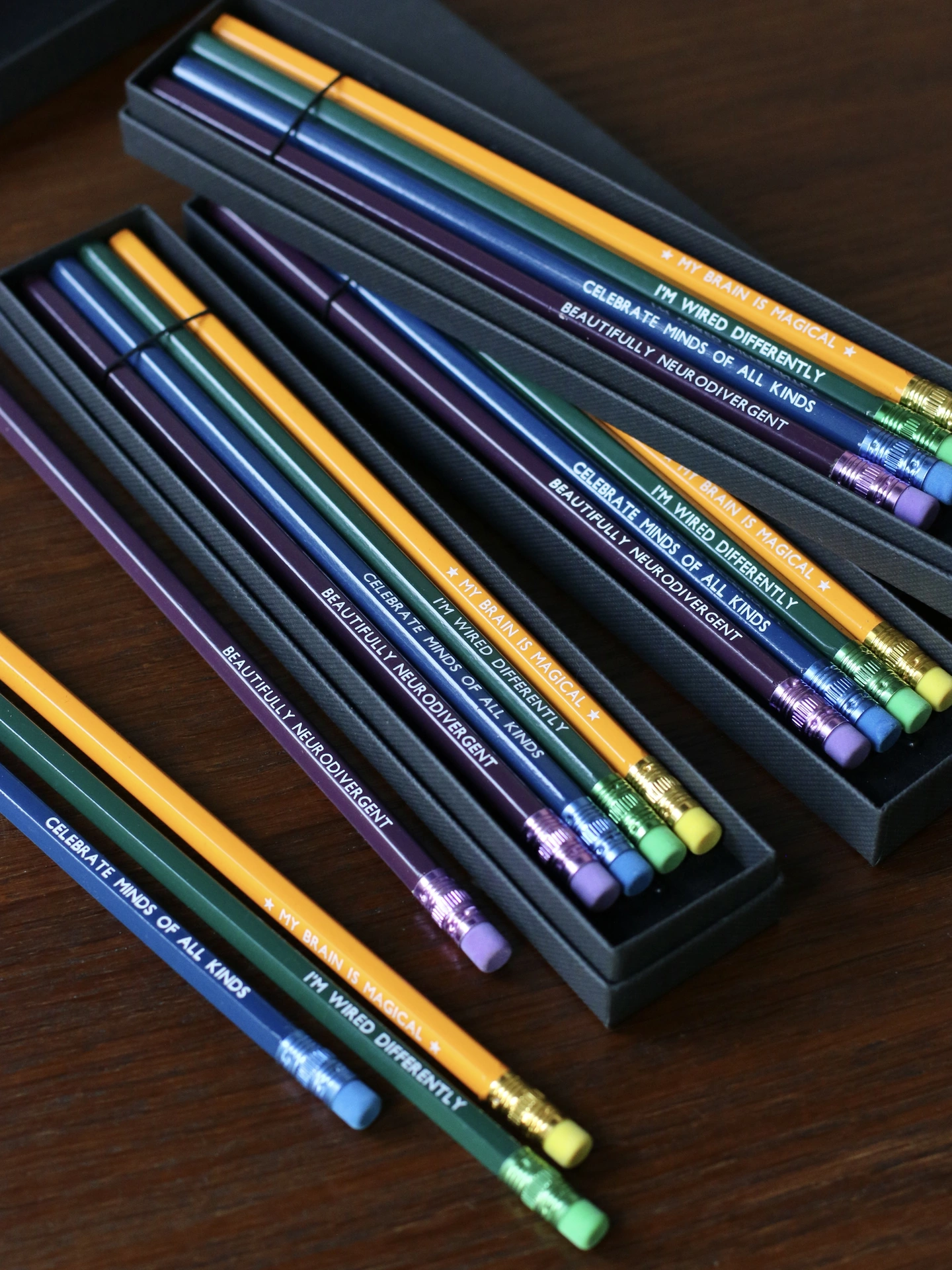 This boxed set of unsharpened HB pencils with rubbers are intended to celebrate Neurodivergence...
