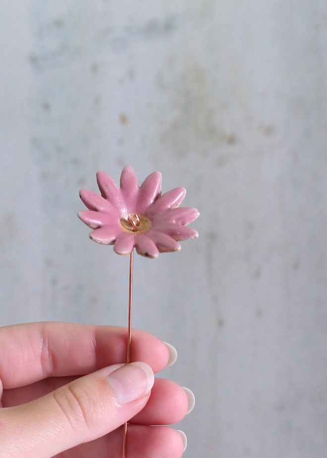 A striking large ceramic daisy stem which is available in our off-white, mint green, light yellow, pale pink or cornflower blue. Soft pastel colours to complement your home decor. The everlasting ceramic flowers work well together or mixed with smaller daisies. Add on our ceramic leaves to really bring your arrangement to life.