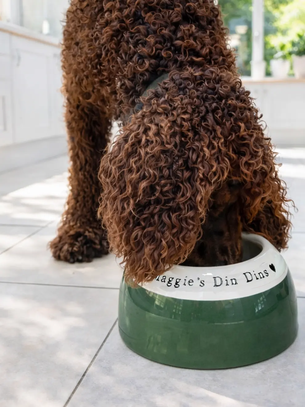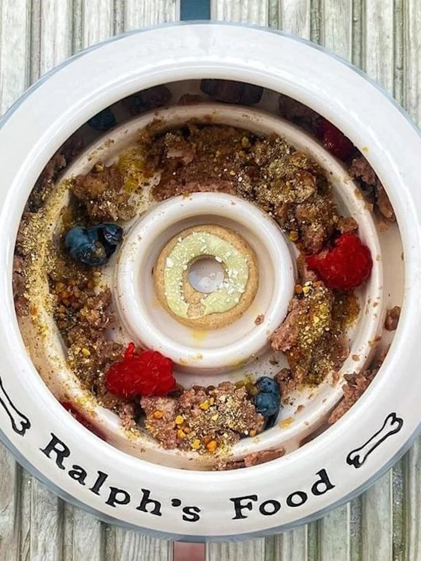 Each bowl is wheel-thrown in my Hampshire studio, glazed in your chosen colour, personalised with your dog’s name or a fun symbol—and if you’ve got a gobbler on your hands, the Go‑Slo option adds gentle internal ridges to slow down fast eaters.