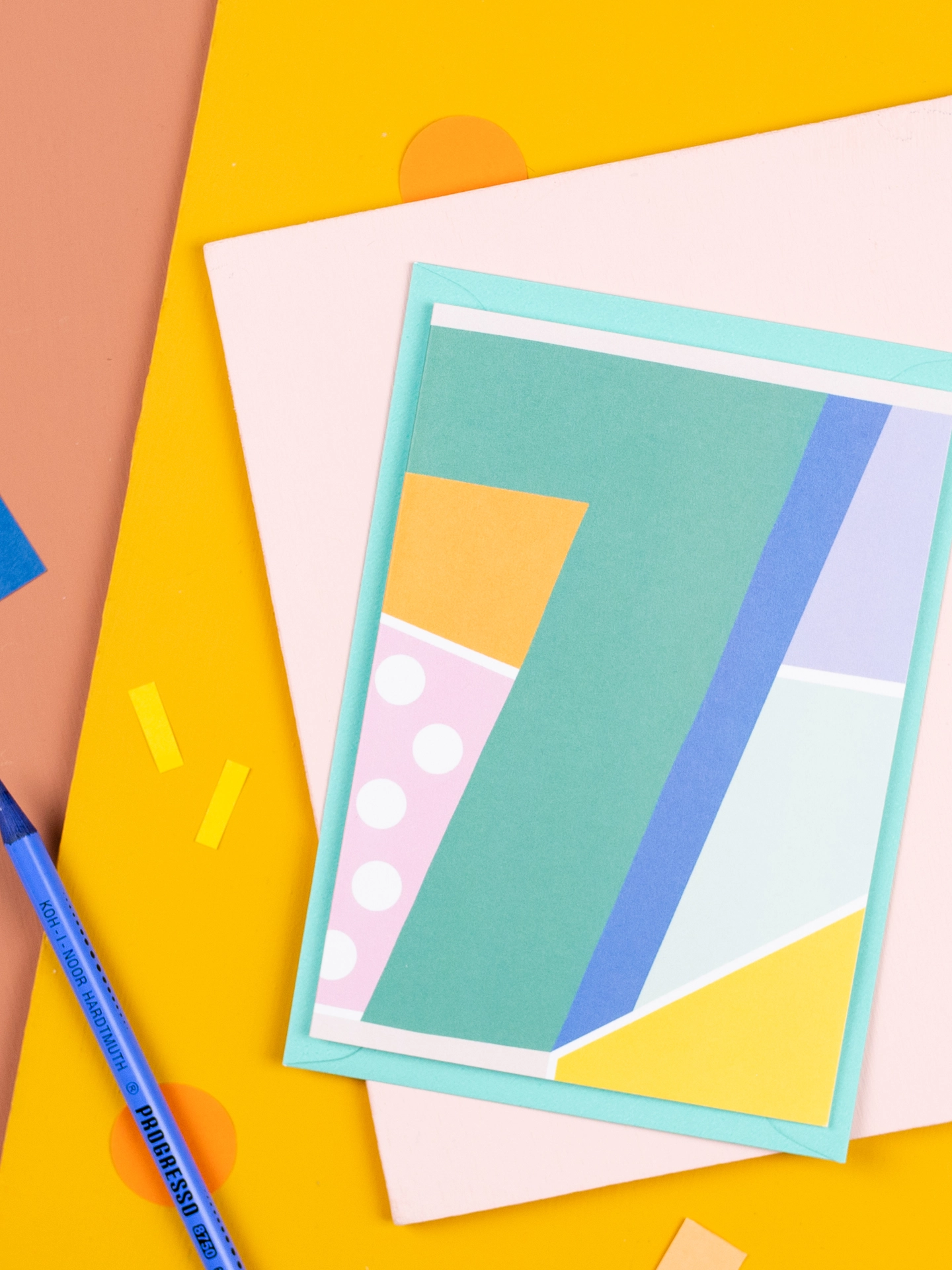 Cute patterned seventh birthday card for the seven-year-old in your life.