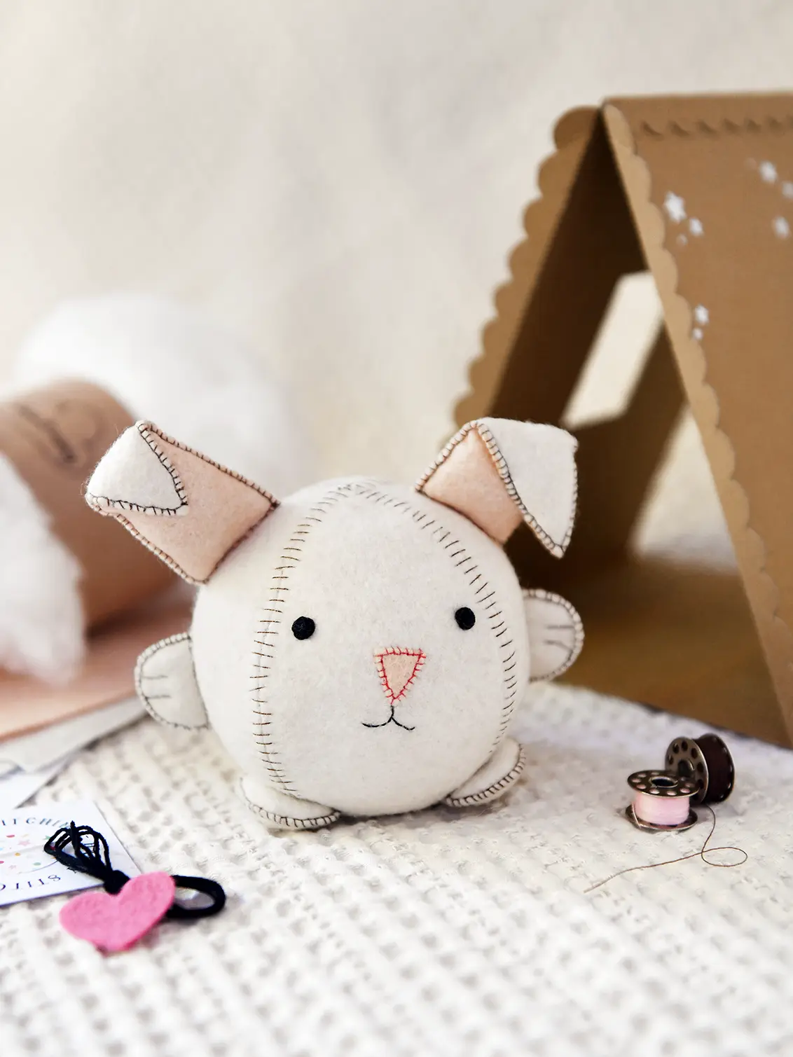 It's a lovely sewing kit for learning how to sew as it uses only basic stitches and easy to handle wool felt. Our detailed instructions and stitch guide will talk you through every step.