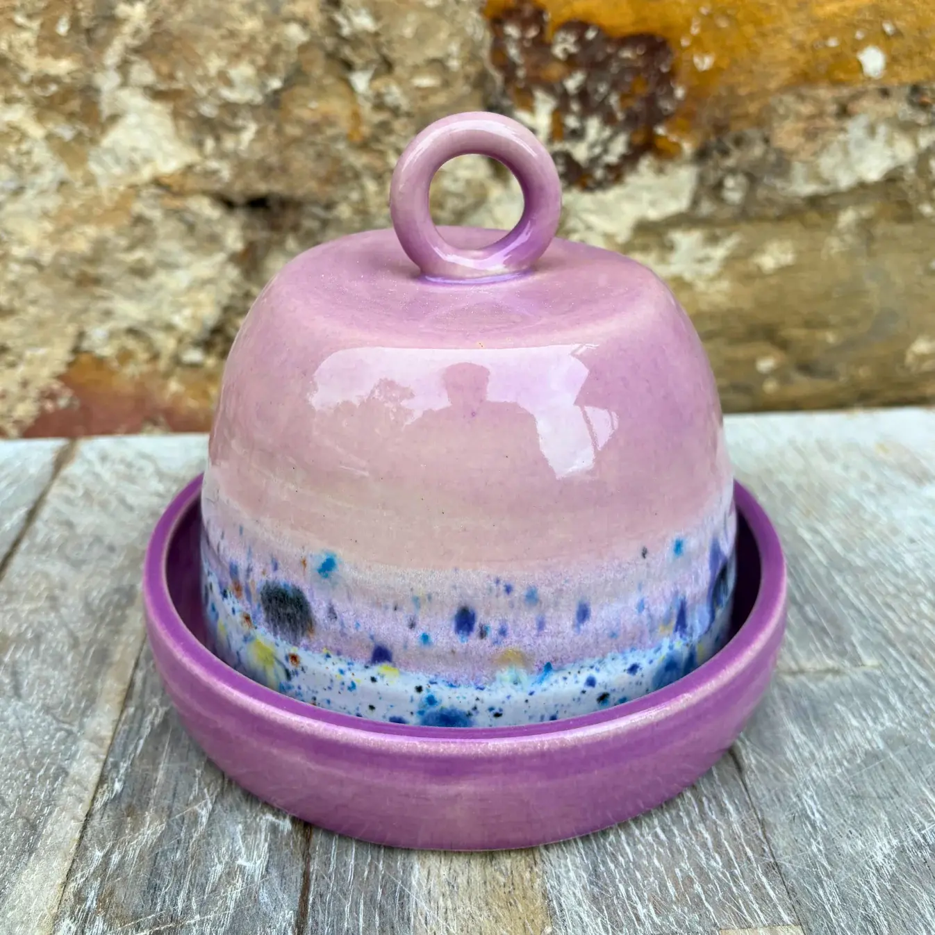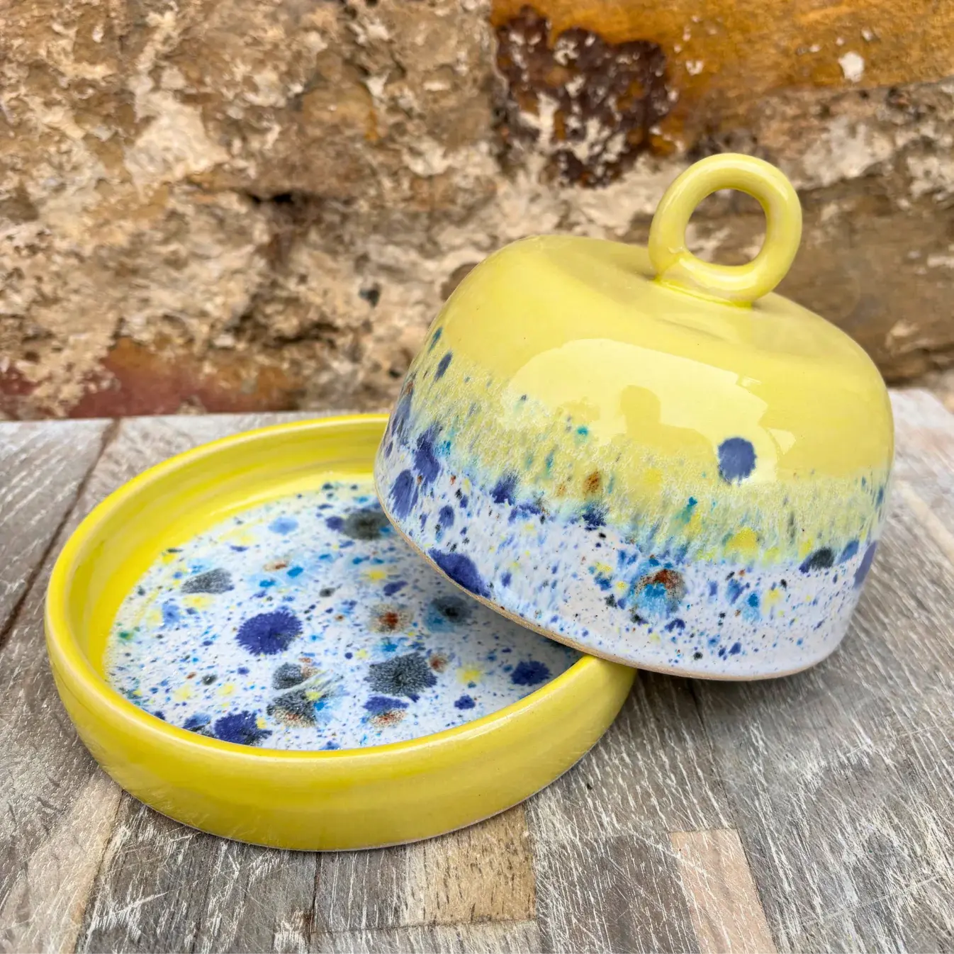 Elevate your breakfast set with a wheel thrown butter dish and lid that will impress any guest or simply bring joy to your morning. Designed to make scooping butter easier with raised edges...