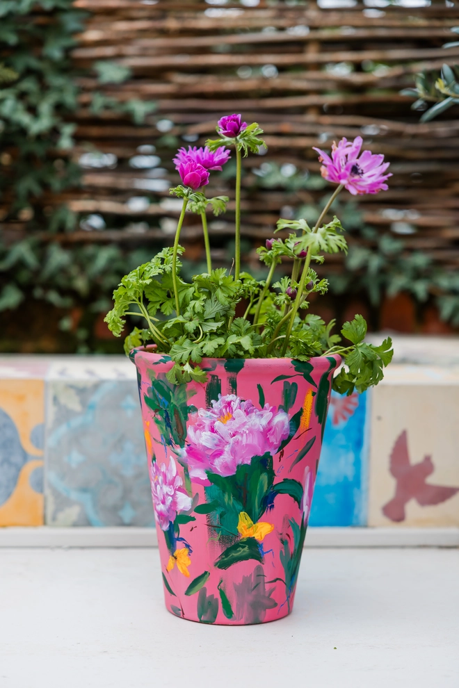 ‘Silent As The Wind' Collection - Floral Hand Painted Tall Plant Pot in Pink