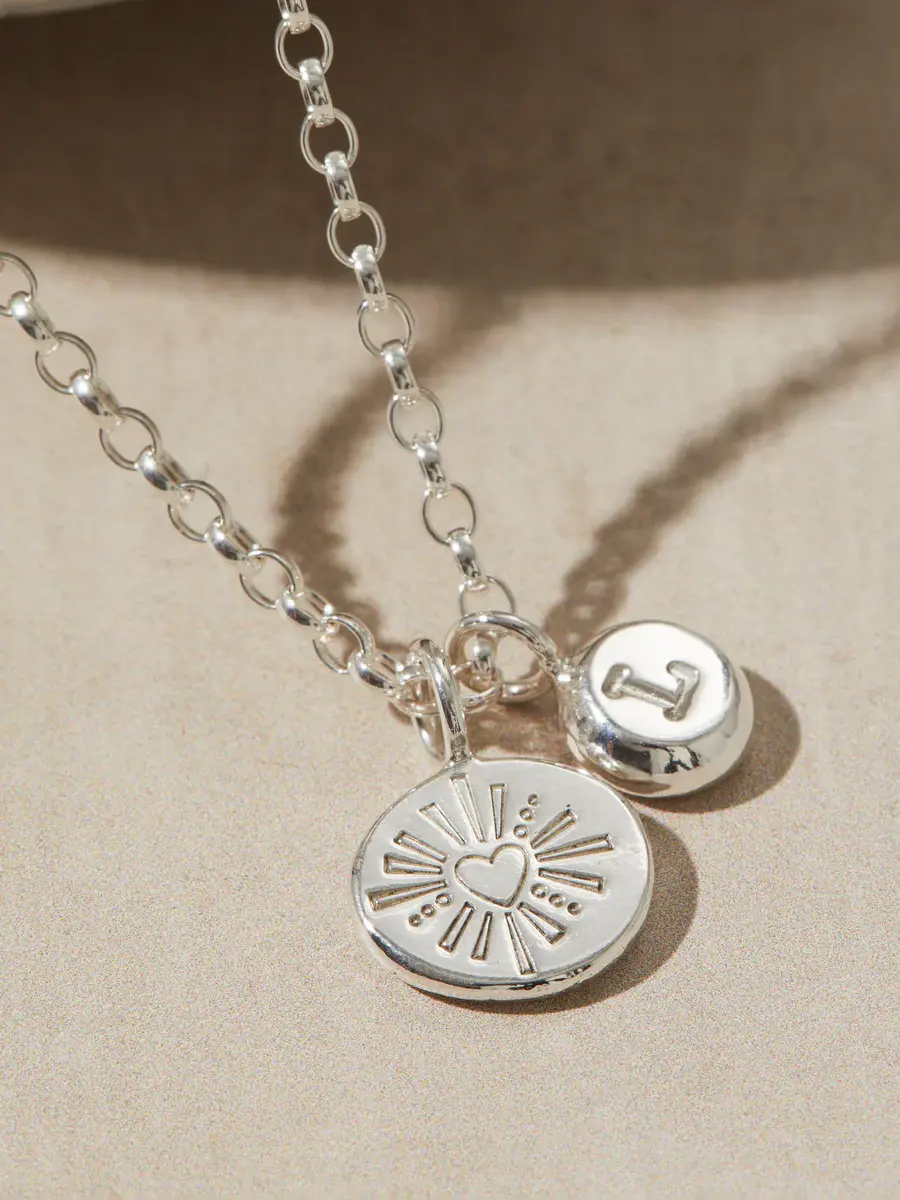 Hannah specially created the Darling Heart design and hand-stamps it onto our unique Silver Heart Pebble Necklace. Personalised with your choice of initial charm and birthstone. The pebble, inspired by a science experiment that Hannah used to teach, invol...