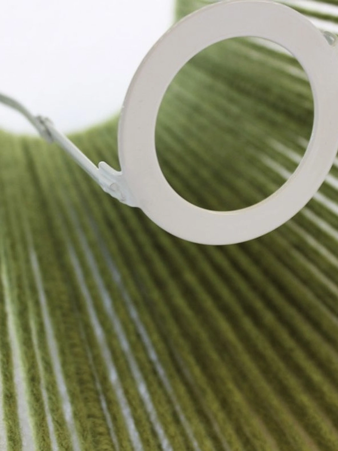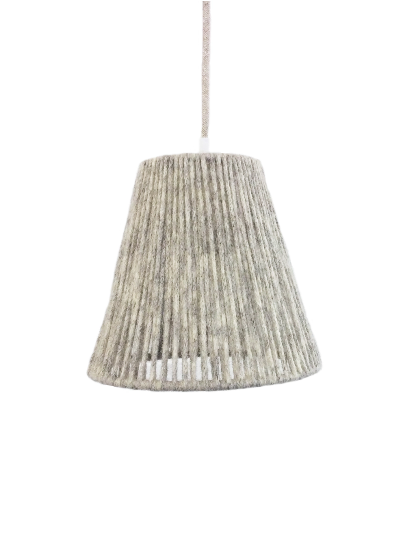 Our hand-made lighting is created using Merino and Pure New wool. We knit cord and wrap onto custom made copper coated steel with enamel coated wire frames.