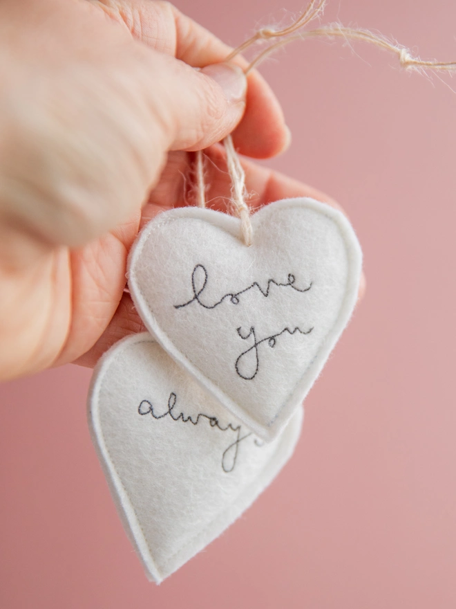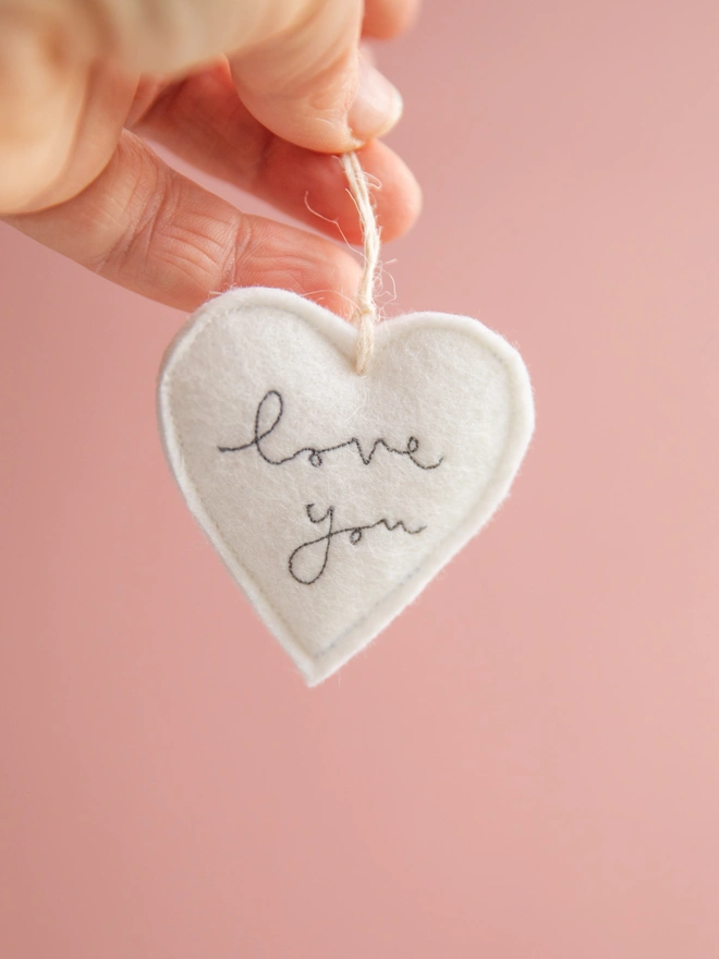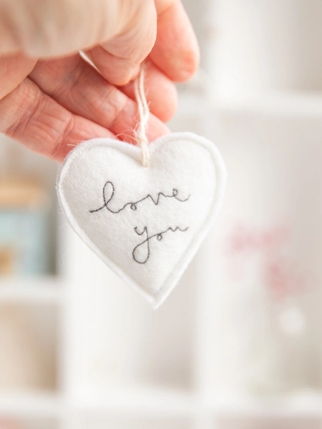 Small White Love Heart Embroidered Hanging Decoration